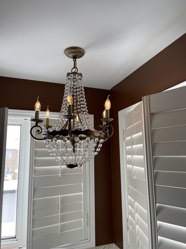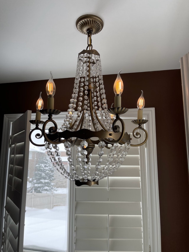 Have a chandelier for sale with crystal. It is in excellent condition. Selling because we are remodeling. All LED lights for the fixture are included. I have extra brand new LED lights available for a small additional amount.