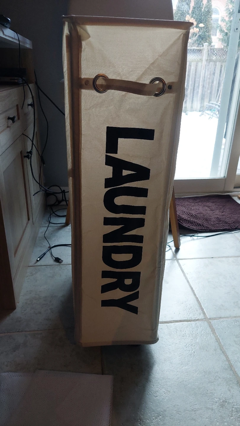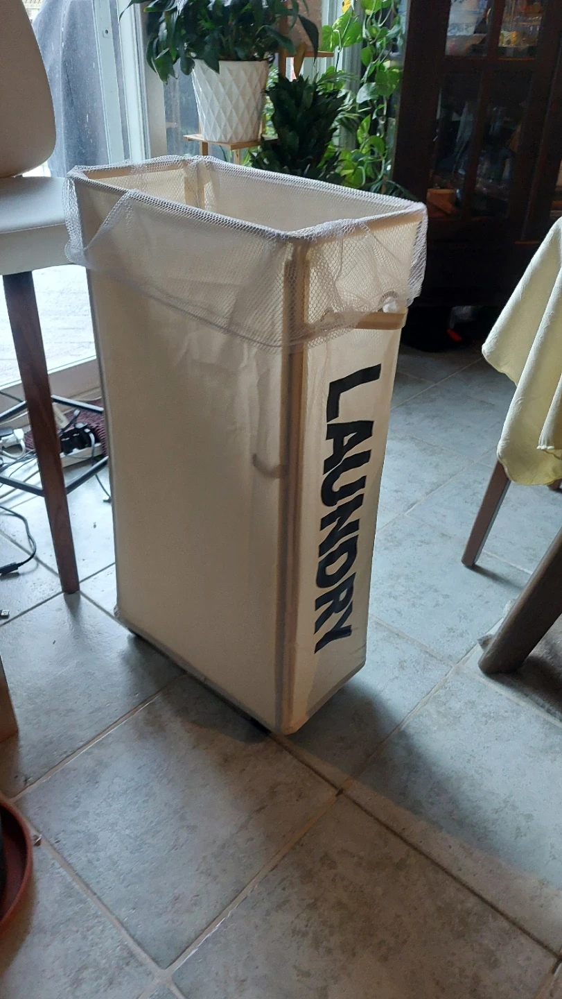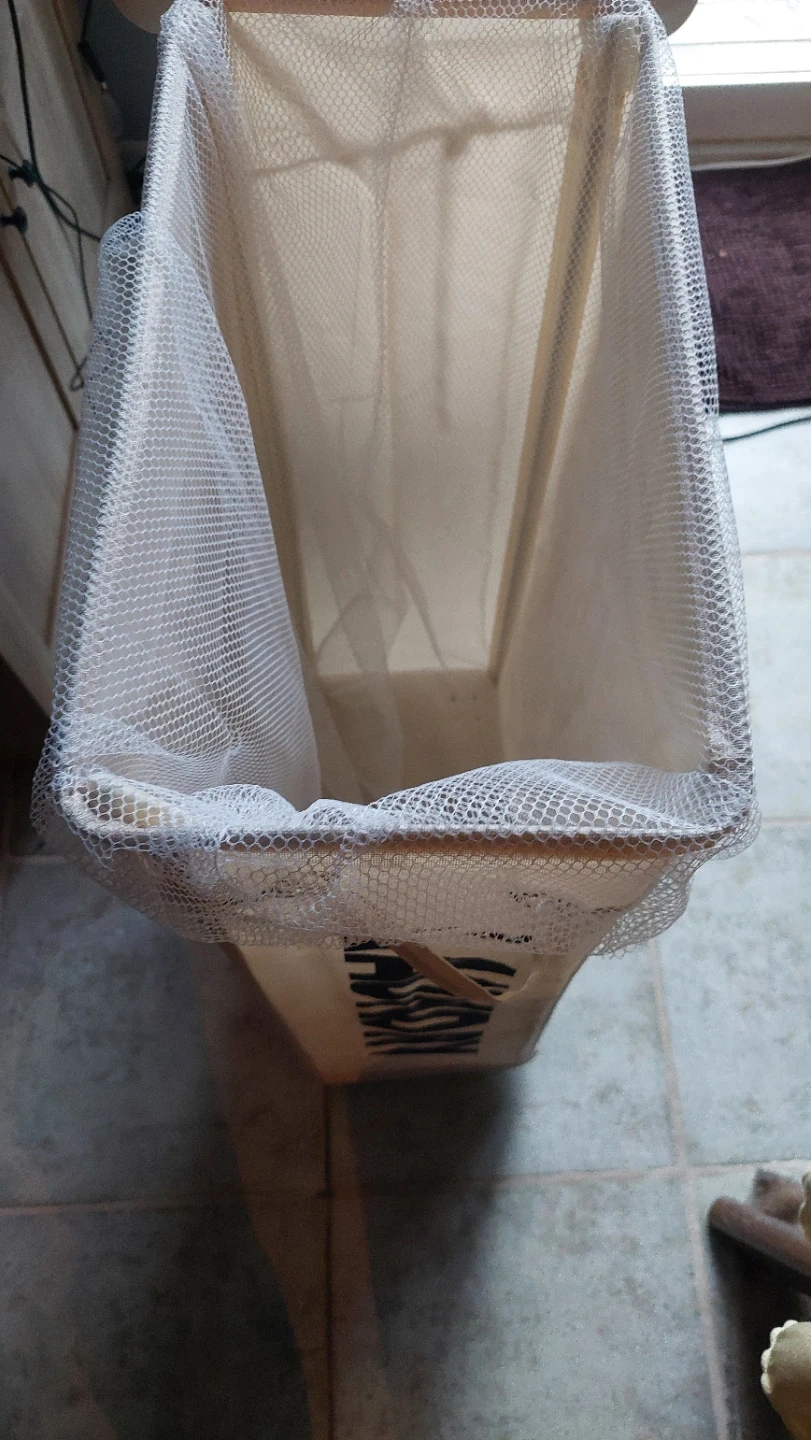 Laundry basket in good condition. It comes with a removable mesh bag insert for easy transport of clothes to the washing machine. The basket is lightweight and easy to move around