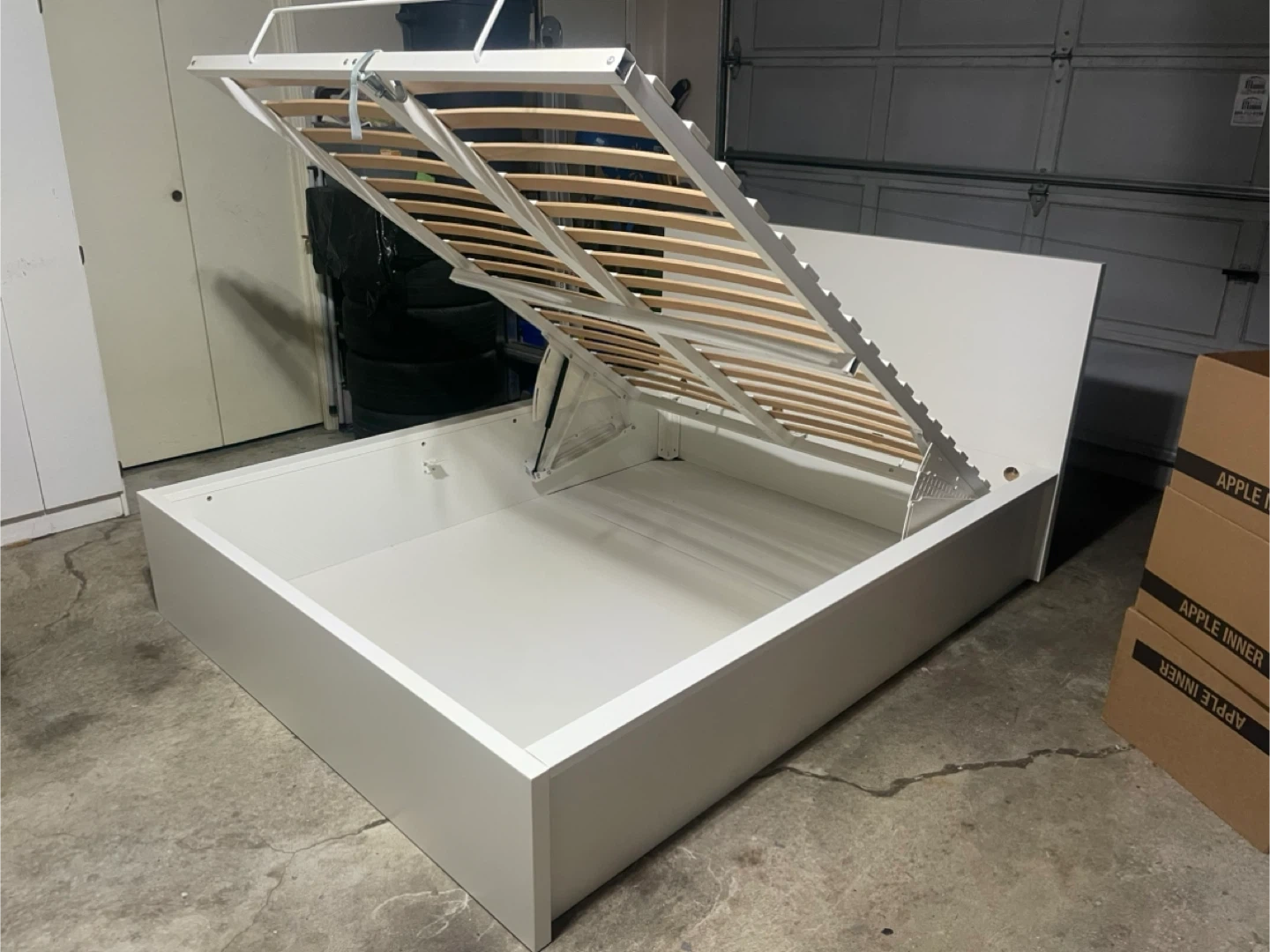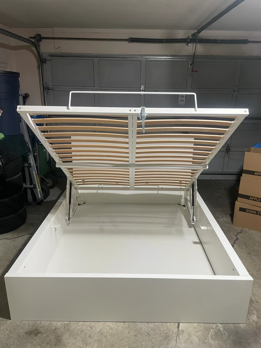 IKEA White Queen Size Malm Pull Up Storage Lift Bed