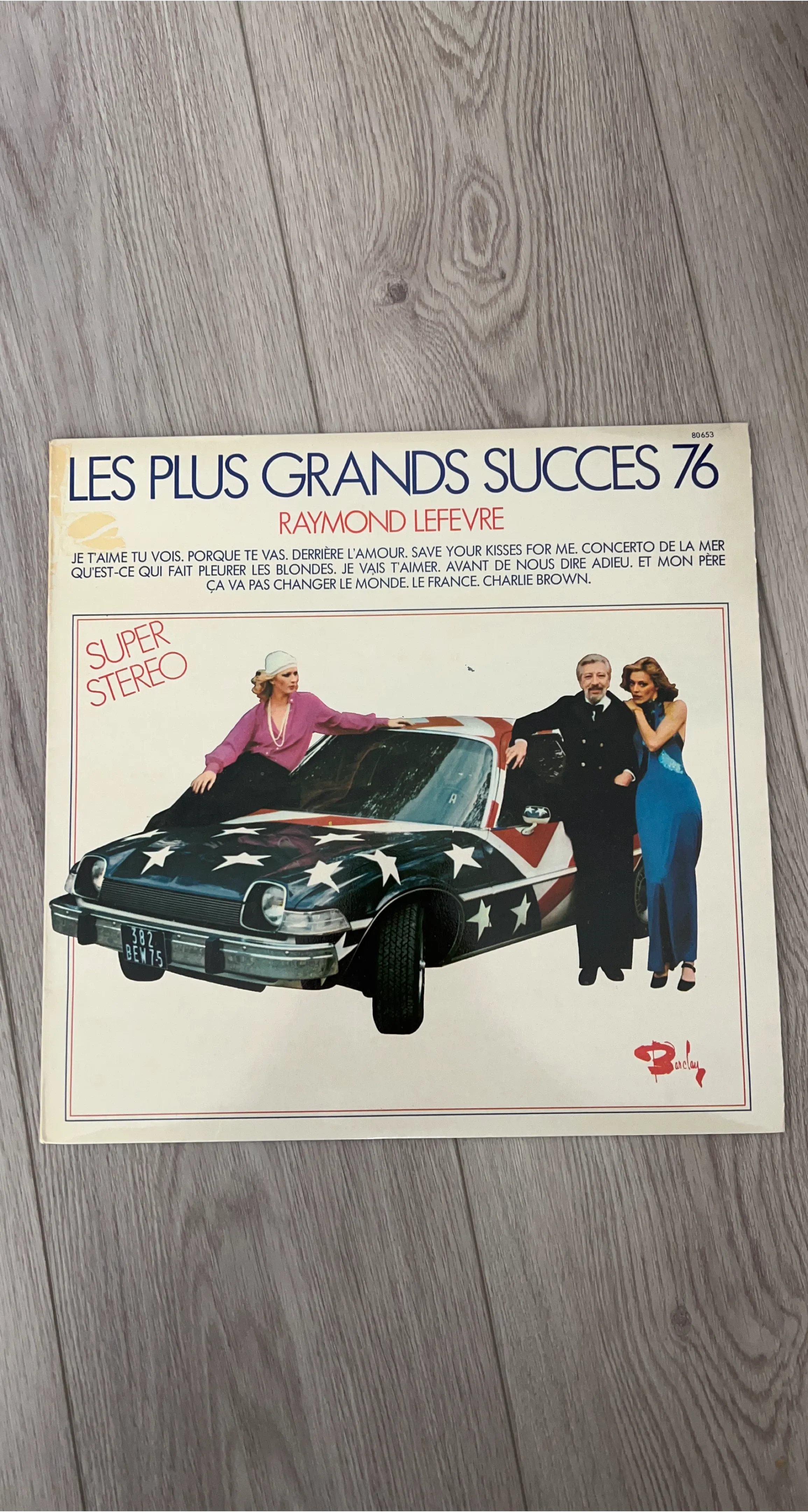 This vinyl record features 'Les Plus Grands Succès 76' by Raymond Lefevre. It's a Super Stereo recording with tracks like 'Je t'aime tu vois' and 'Charlie Brown'. This collection would appeal to fans of 70s French pop music.