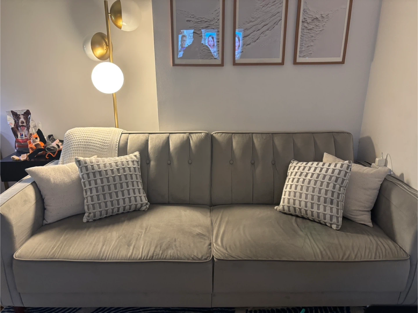 81.5" Gray Velvet Convertible Sofa
