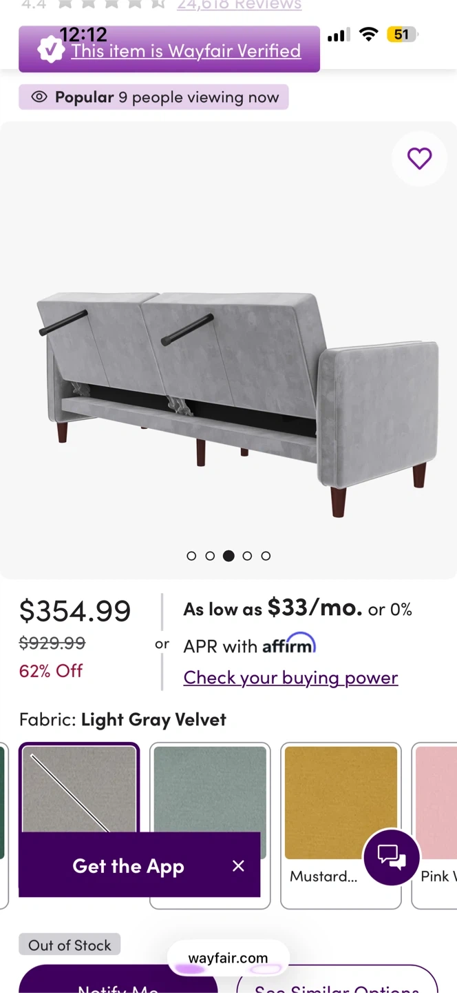 This is a gray velvet tufted sofa. This convertible sofa effortlessly transitions from a stylish seating area to a twin-size bed, making it a versatile addition to your living space. Built with an engineered wood frame and resting on brown-toned tapered legs, it exudes a vintage-inspired charm that complements various decor styles. Upholstered in plush velvet, it offers a rich solid hue that adds a touch of elegance to your room. Foam-filled cushions provide firm support, while vertical channel tufting and square arms enhance its mid-century modern appeal. Perfect for accommodating overnight guests, this sofa is a practical choice for compact spaces.