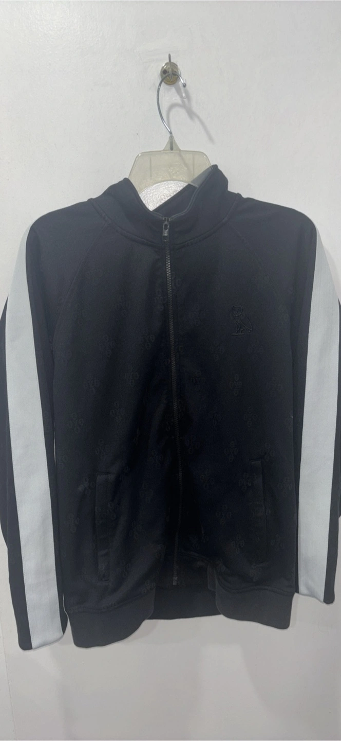 Selling an OVO (October's Very Own) track jacket in size L. It's black with a subtle pattern and the OVO owl logo. Perfect for adding a bit of Toronto style to your wardrobe!