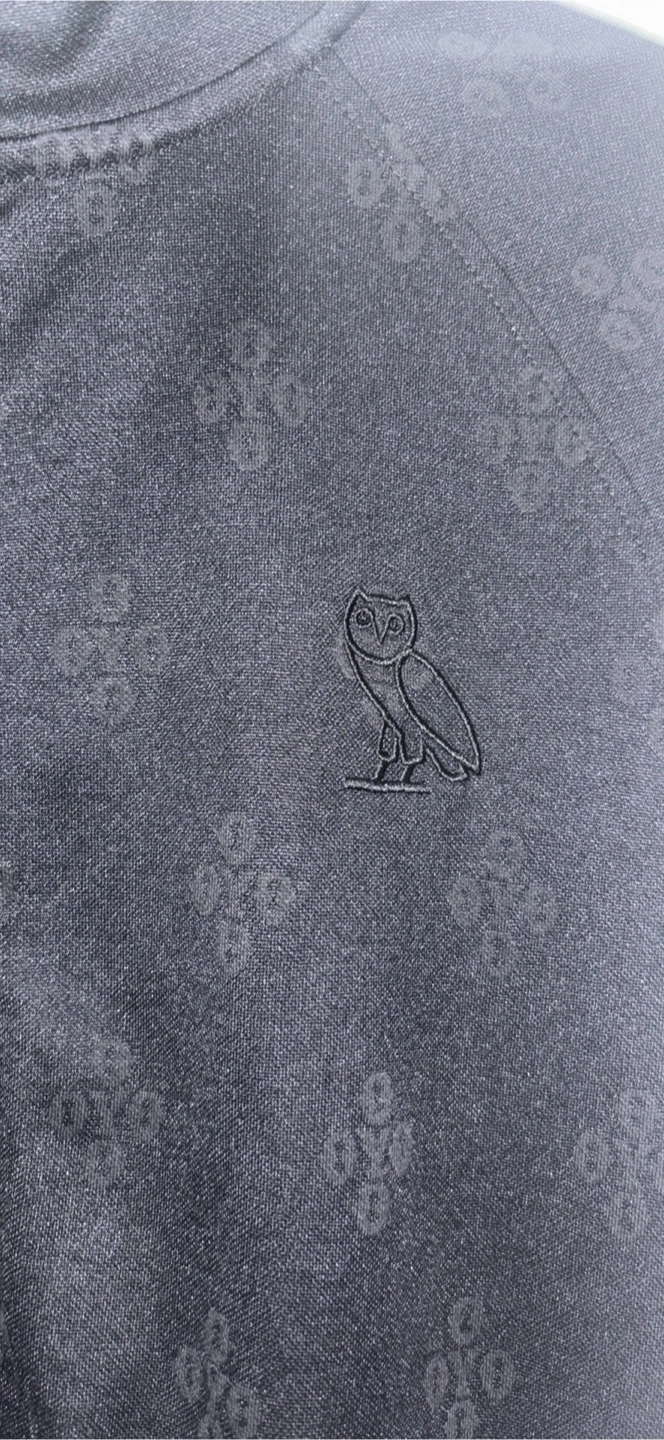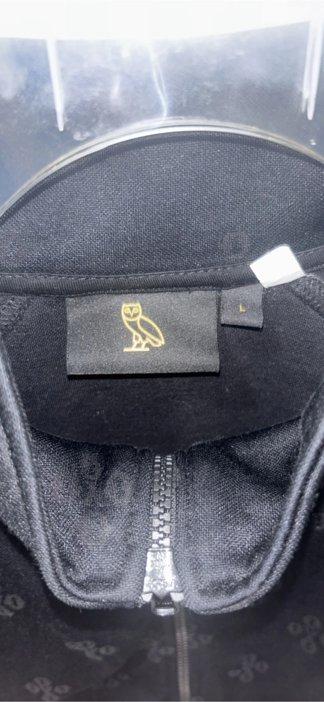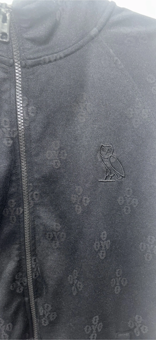 Selling an OVO (October's Very Own) track jacket in size L. It's black with a subtle pattern and the OVO owl logo. Perfect for adding a bit of Toronto style to your wardrobe!