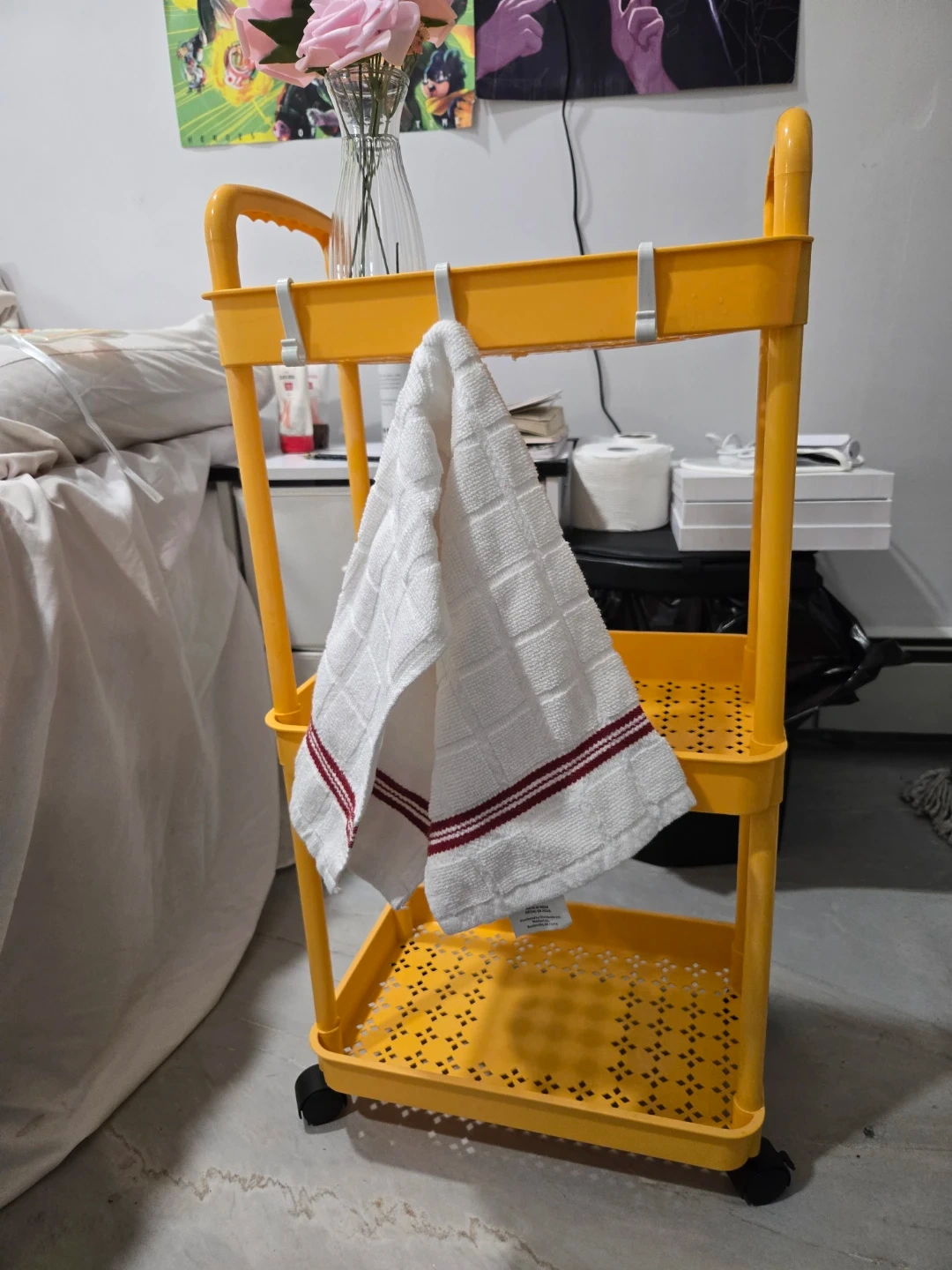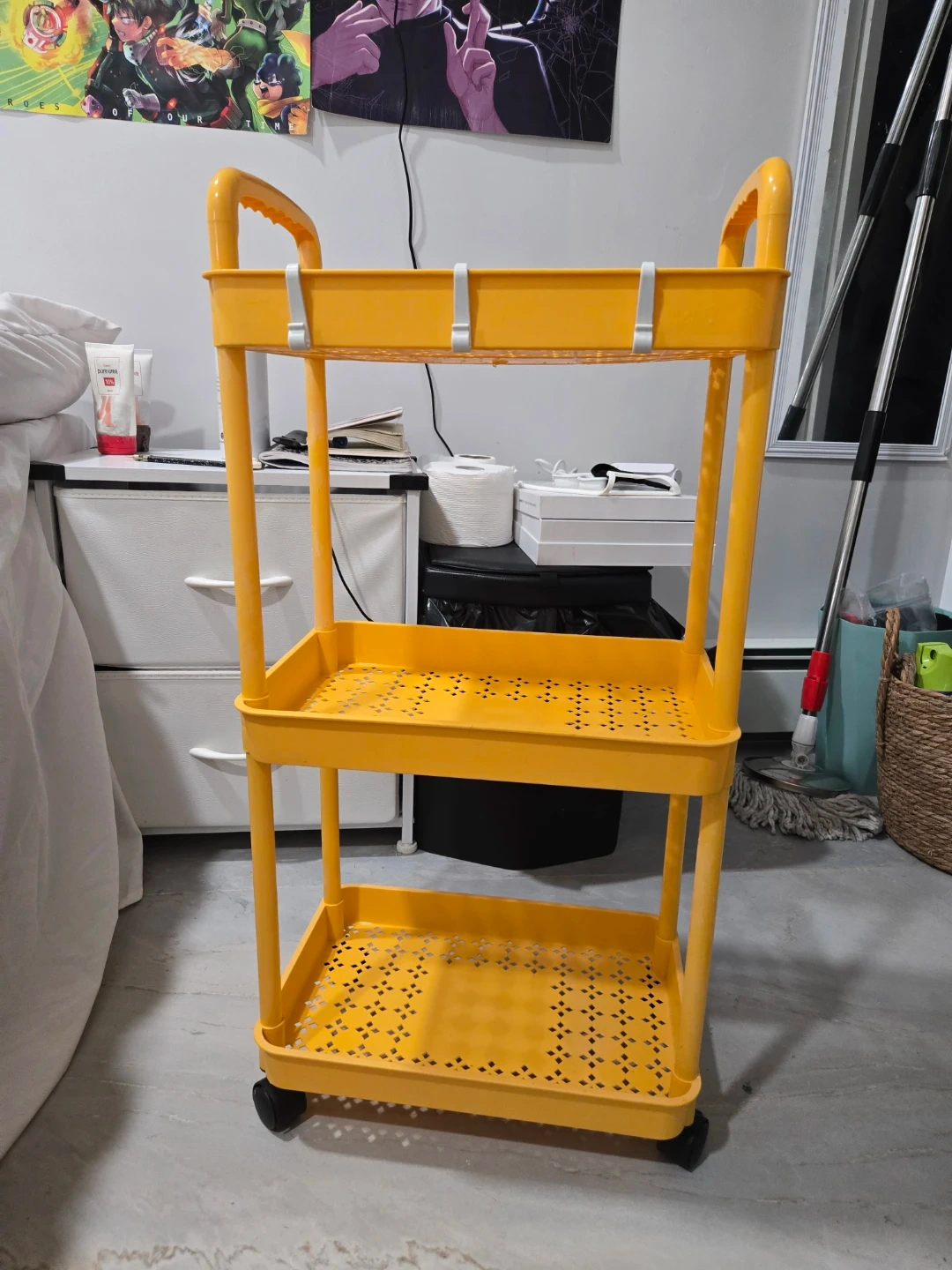 Selling a yellow Ikea Raskog utility cart! It's in great shape and ready to help organize your space. It's perfect for the kitchen, bathroom, or anywhere you need a little extra storage. The cart is easy to move around thanks to its sturdy wheels