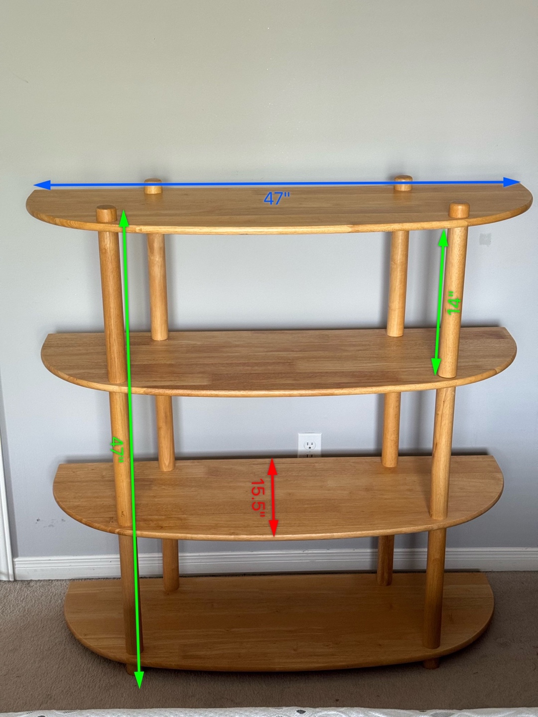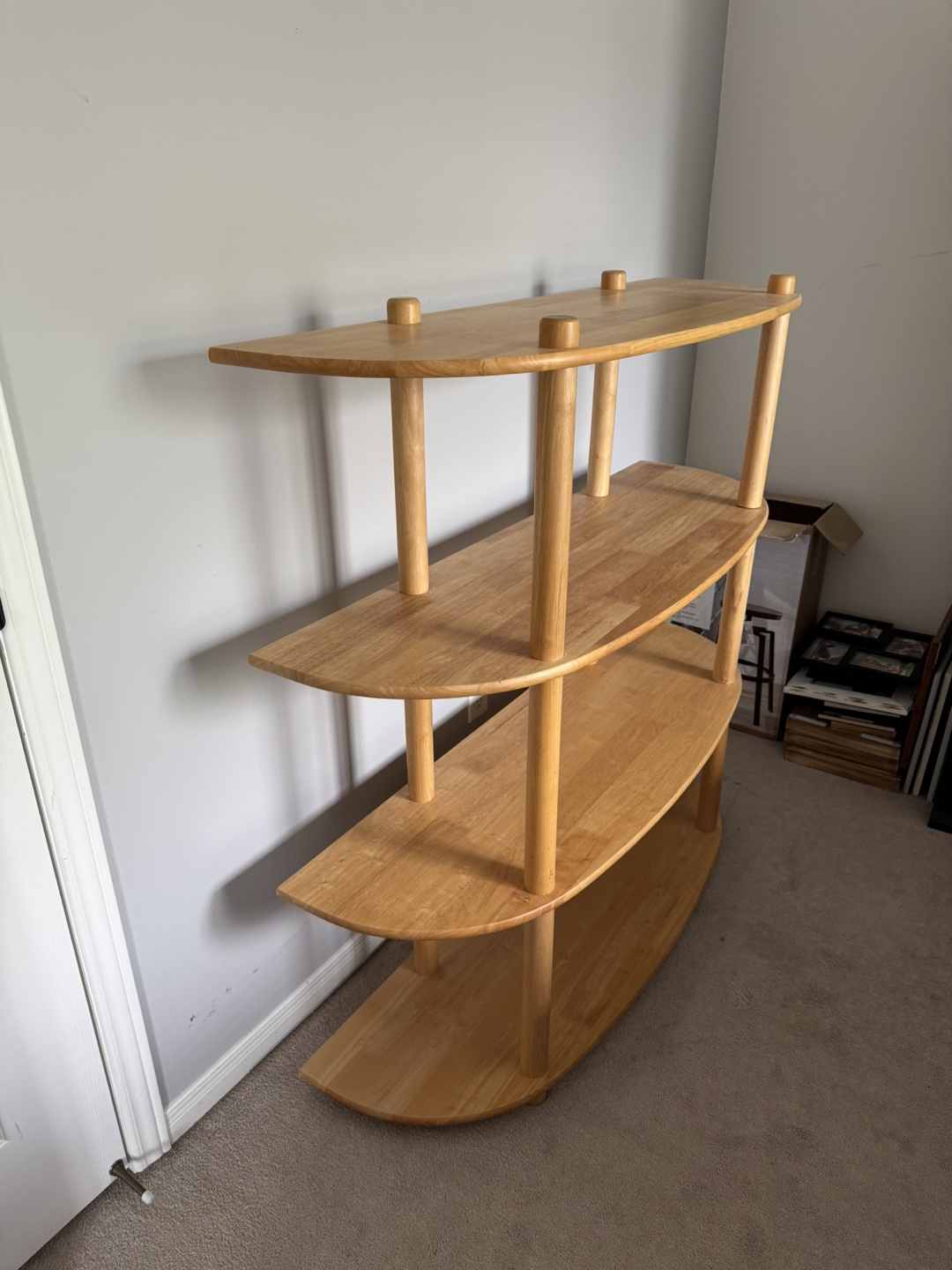 1 / 31 / 3Buy & SellWooden 4 Shelf UnitWooden 4 Shelf Unit$40Four shelf display unit, light wood finish. Curved shelves and rounded edges. Sturdy wooden construction. Good for books, decor, or display.ConditionGoodDimensions47 X 15.5 X 47WHERE TO MEETVery close to Hoover Park and Ninth LineView MapSELLERverifiedJasonStouffville750 reviews1 chats·1 favorites·14 viewsSEND CHAT TO SELLERHi Jason! I’m interested in your listing.Hi Jason! I’m interested in your listing.Get the Karrot app to chatSign In to chat
