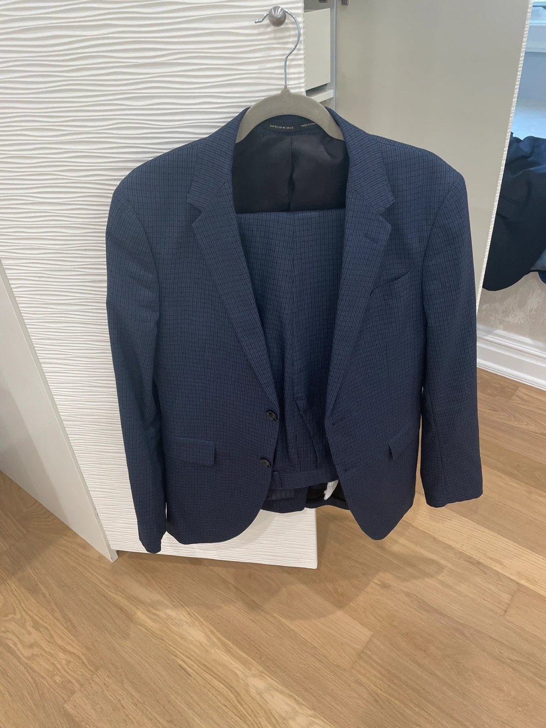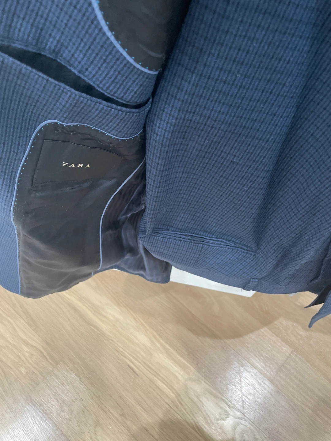 Selling a Zara men's suit in navy blue. The suit appears to be in good condition and ready to wear. It features a classic design and is perfect for various occasions