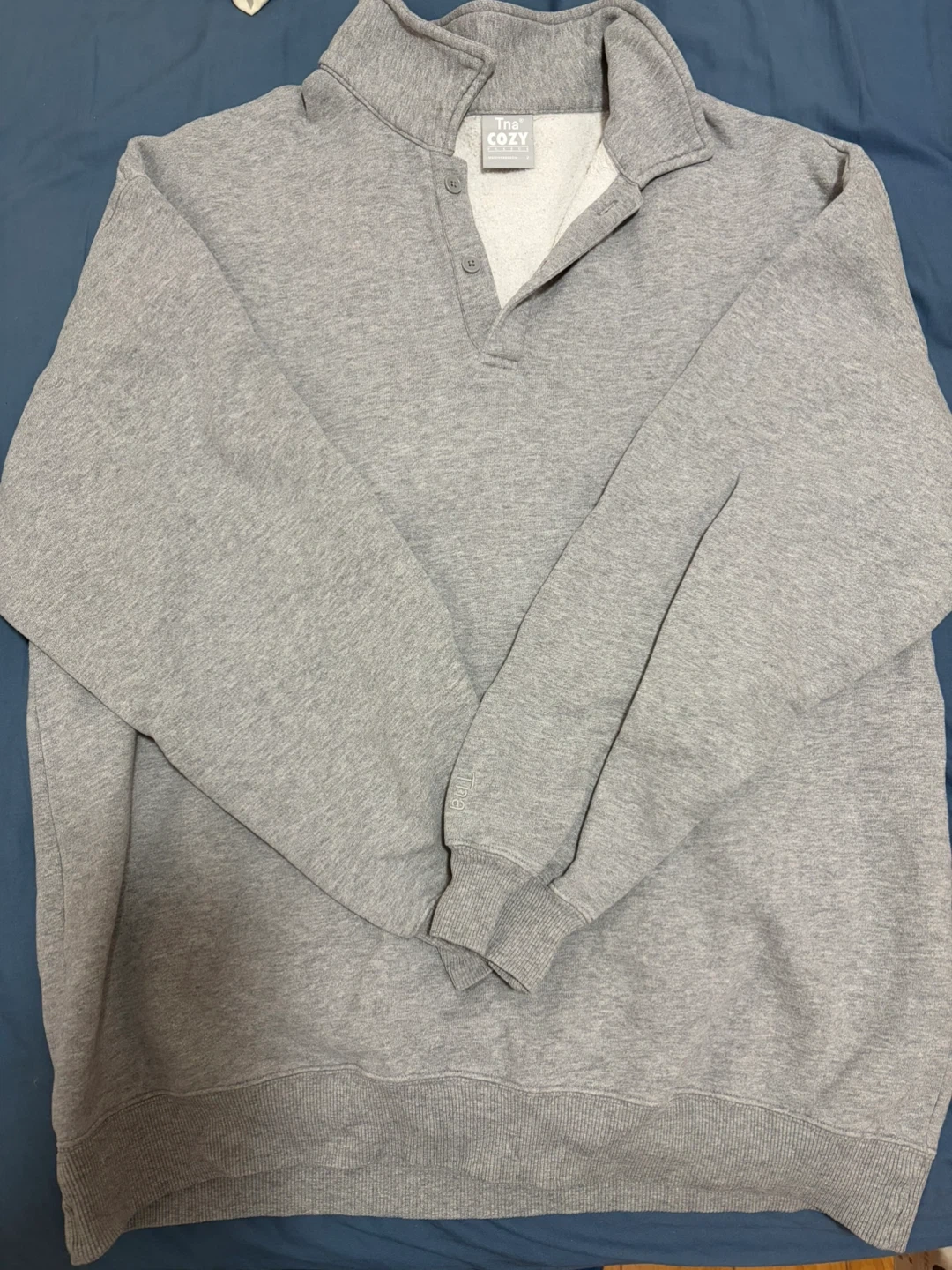 Selling a Tna COZY fleece pullover in a lovely grey colour! It's super comfortable and perfect for lounging around or layering up on chilly days. The material is soft and cozy, making it a great addition to your wardrobe