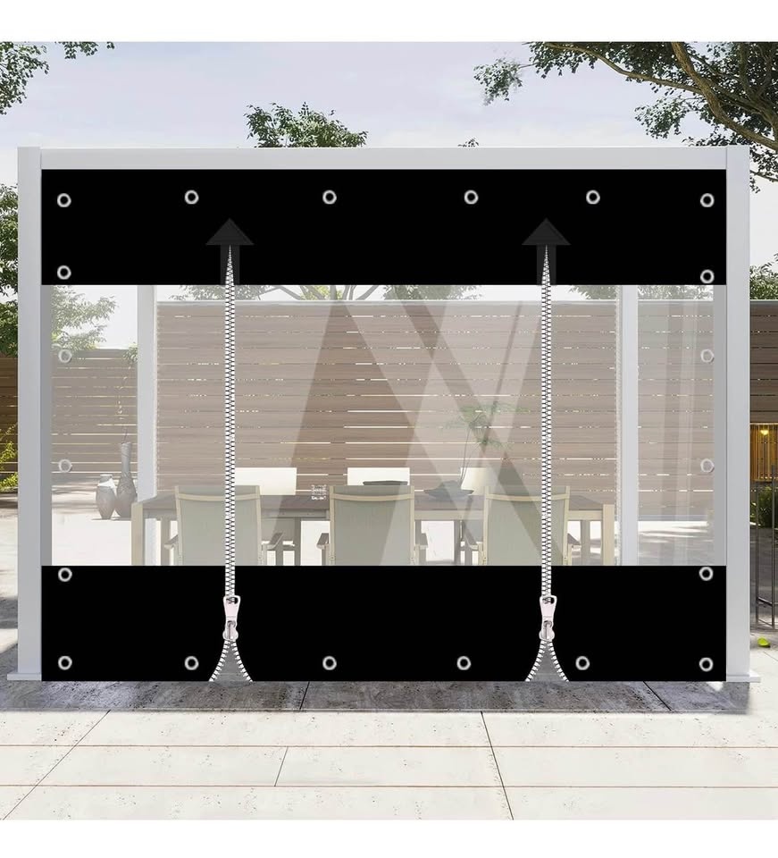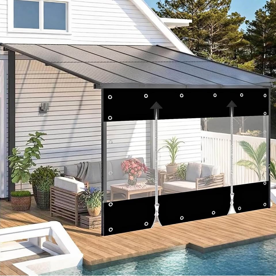 Clear Tarps with Zipper Door, Heavy Duty PVC Transparent Tarpaulin Side Panels, Tarpaulin Rain Curtains for Outdoor Pergola Garden Gazebo (Black, 7'HX10'W)