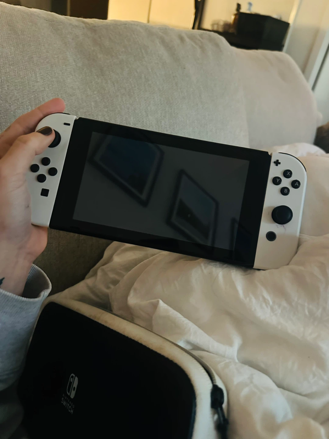 Selling a Nintendo Switch m in white. It comes with the original case. used like new!
