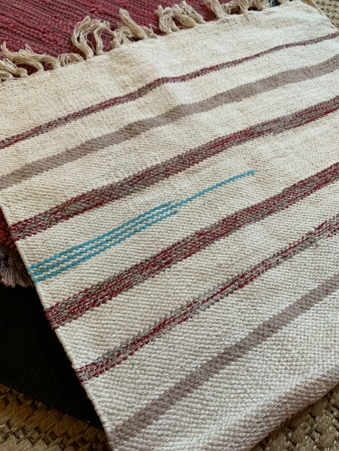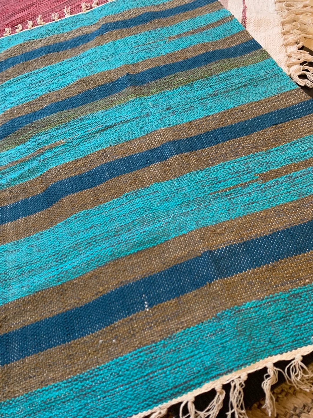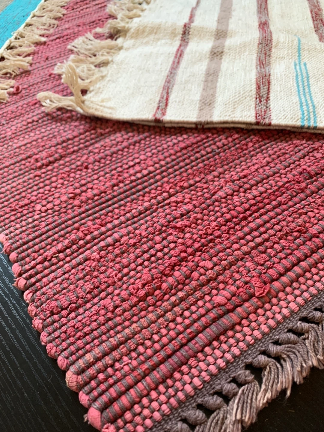 👉🏻First come first serve 👉🏻Near Queen St West and Niagara St 👉🏻Cash only. Msg to schedule pickup, thx • Set of three woven cotton rugs. Features natural fibre tassels along the edges. •Great for adding a touch of colour and texture to your space! •Beige and blue stripe rugs- New •Dark pink peach rug- gently used in the guest room next to the bed( faded color on 1 side as shown last photo). Clean, currently in storage. Measurements excluding tassels ••••••••••••••••••••••••••••••••• Beige Stripe Rug -21” x 34.5” Blue Stripe Rug-23.5” x 36” Pink Rug- 12.75” x 51” •Smoke/ Pet free home•