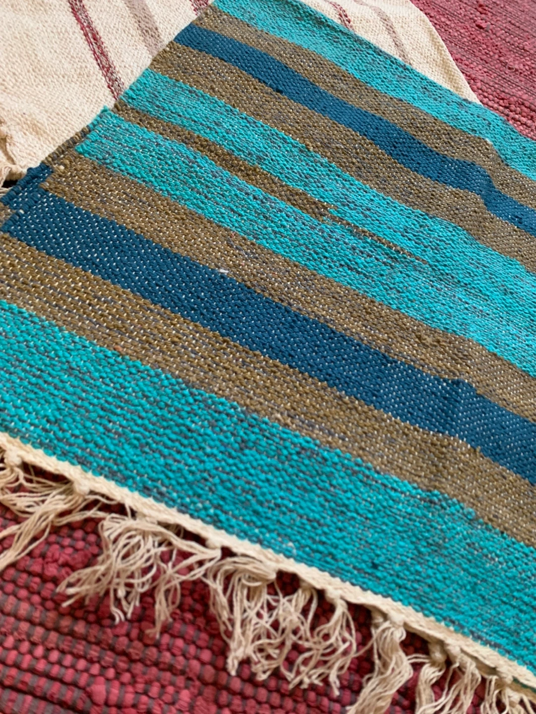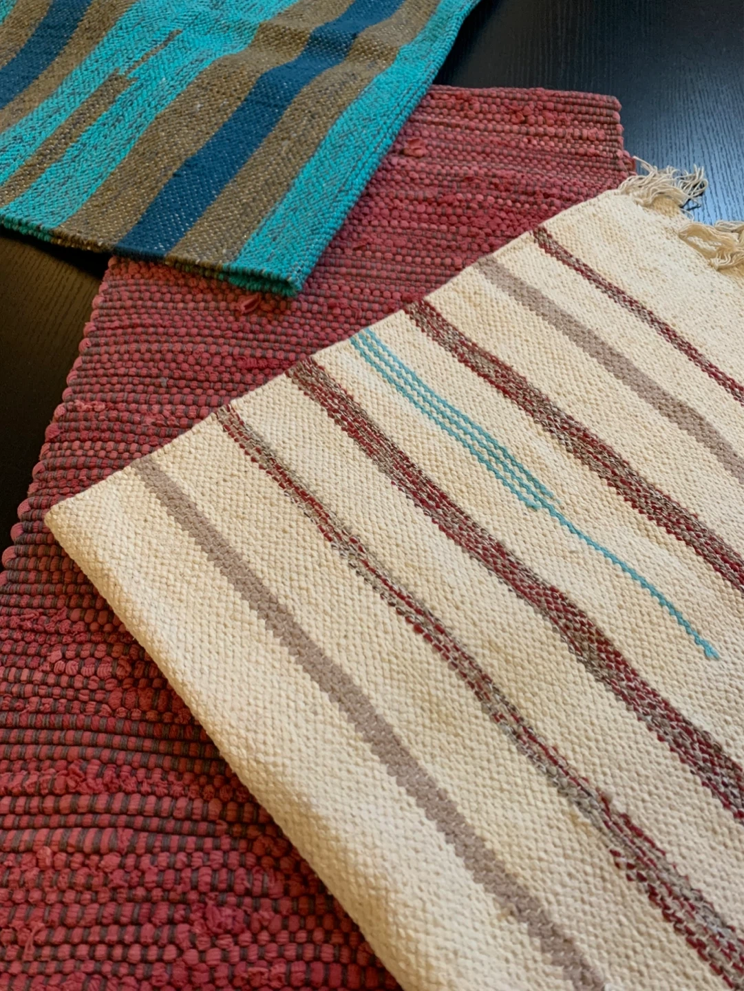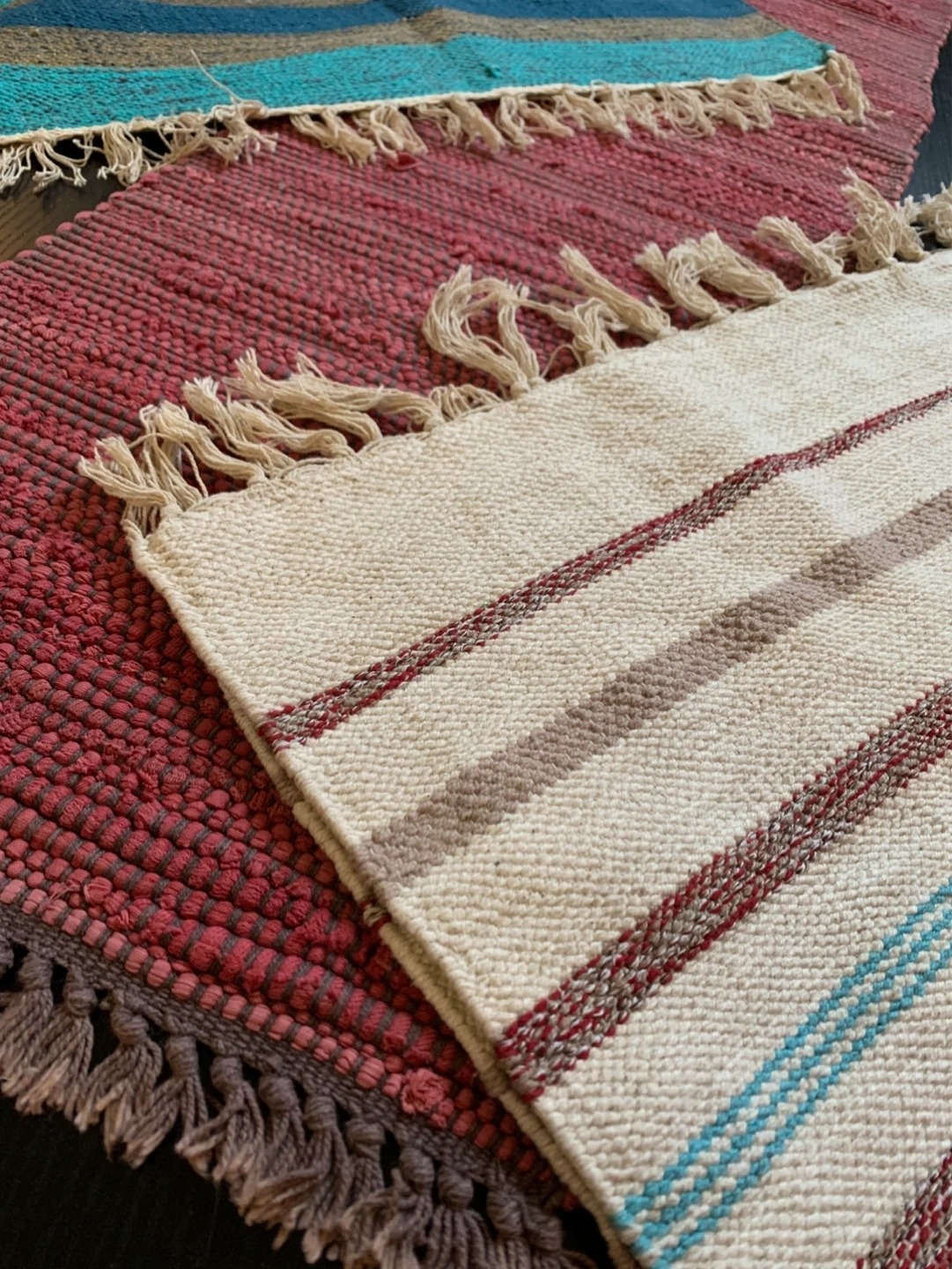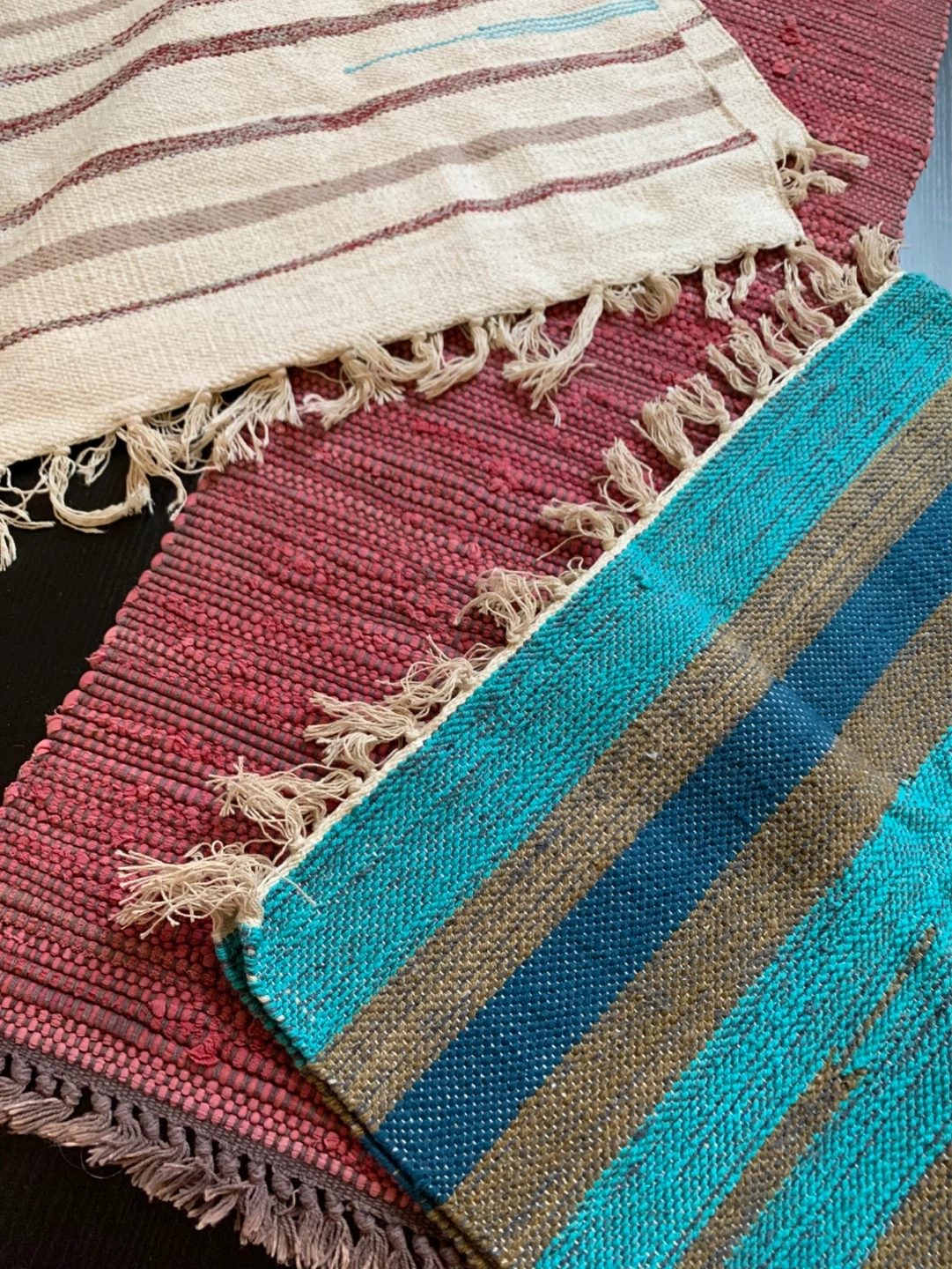 👉🏻First come first serve 👉🏻Near Queen St West and Niagara St 👉🏻Cash only. Msg to schedule pickup, thx • Set of three woven cotton rugs. Features natural fibre tassels along the edges. •Great for adding a touch of colour and texture to your space! •Beige and blue stripe rugs- New •Dark pink peach rug- gently used in the guest room next to the bed( faded color on 1 side as shown last photo). Clean, currently in storage. Measurements excluding tassels ••••••••••••••••••••••••••••••••• Beige Stripe Rug -21” x 34.5” Blue Stripe Rug-23.5” x 36” Pink Rug- 12.75” x 51” •Smoke/ Pet free home•