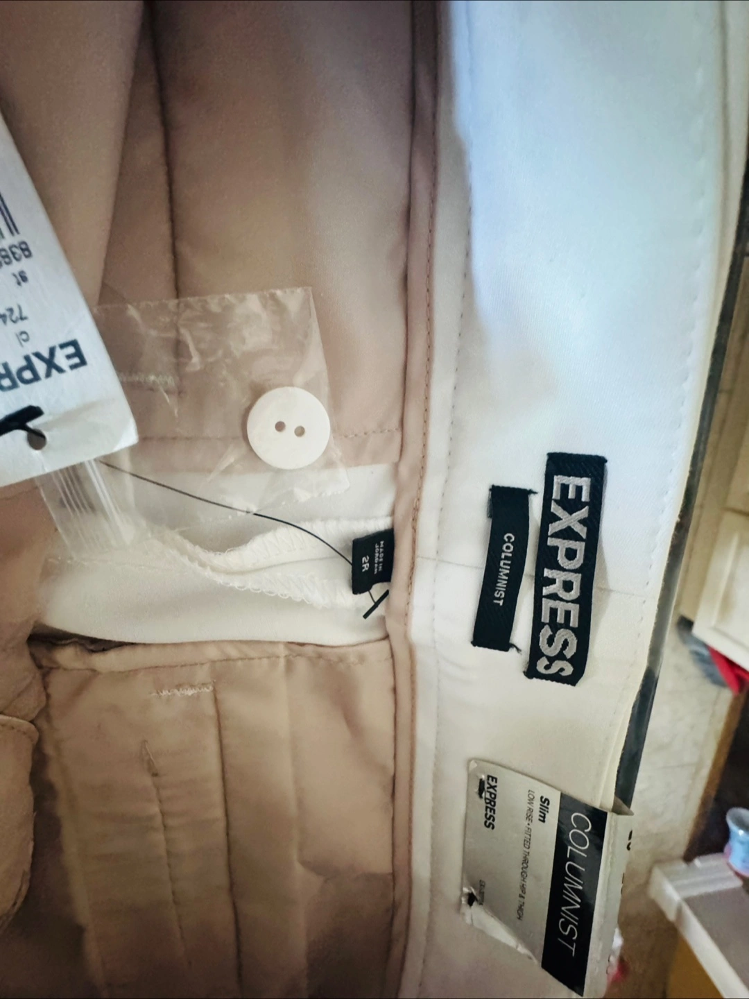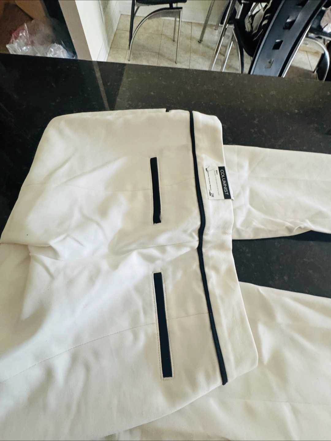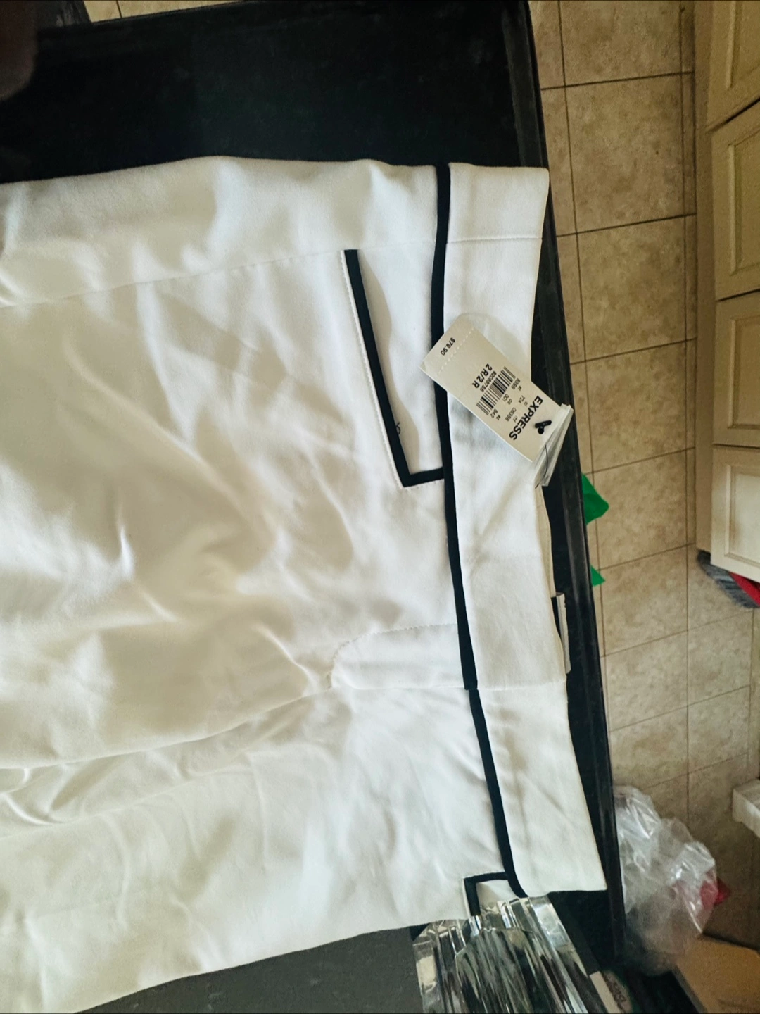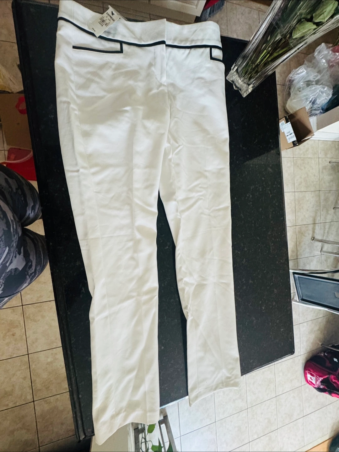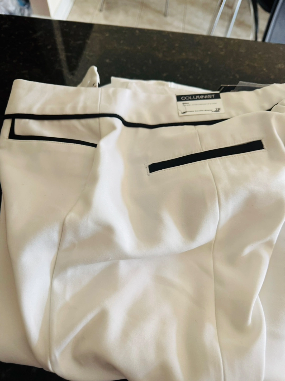 These are a brand new pair of Express Columnist slim pants in size 2R! They're white with black trim, perfect for a clean and stylish look