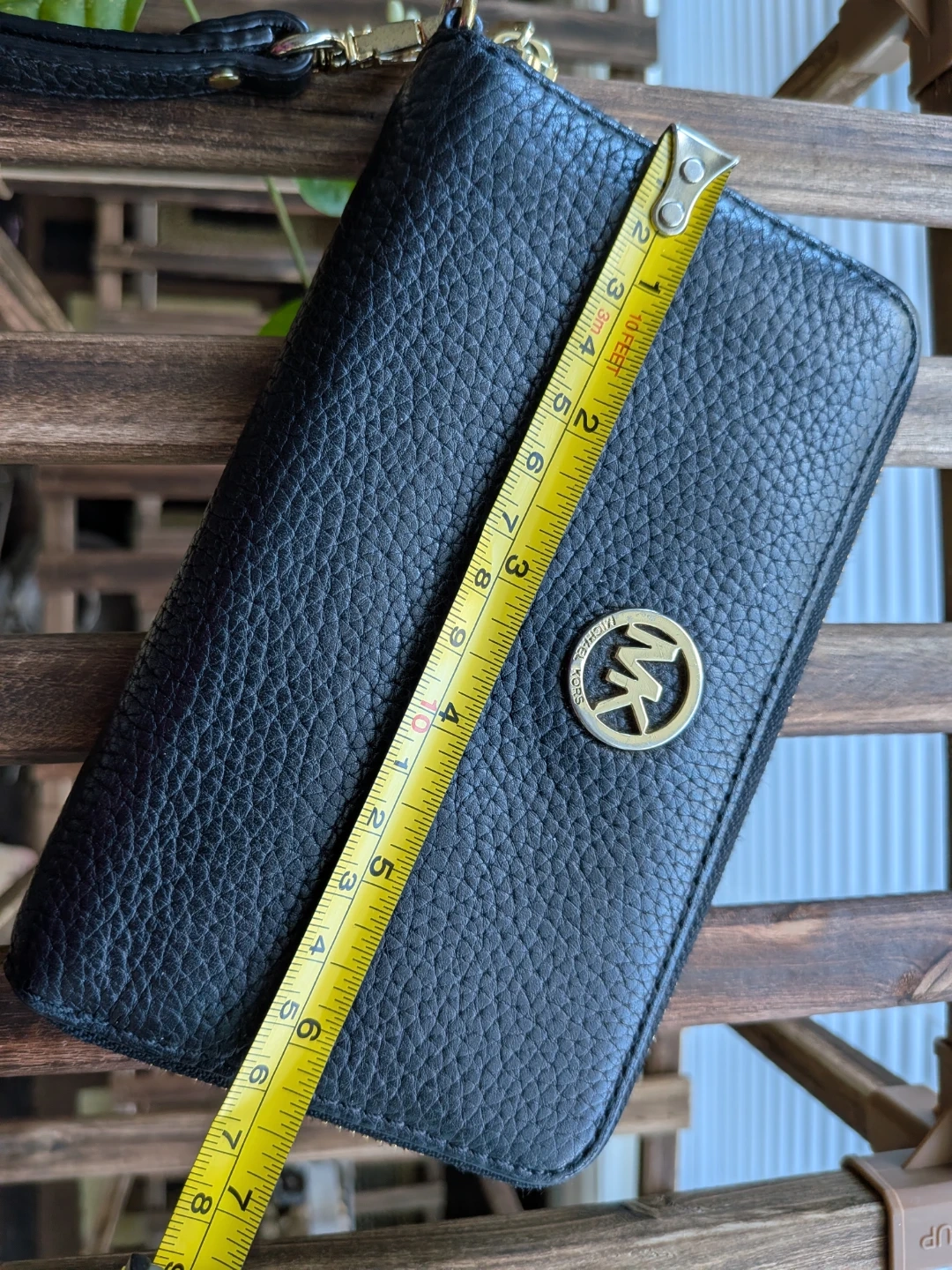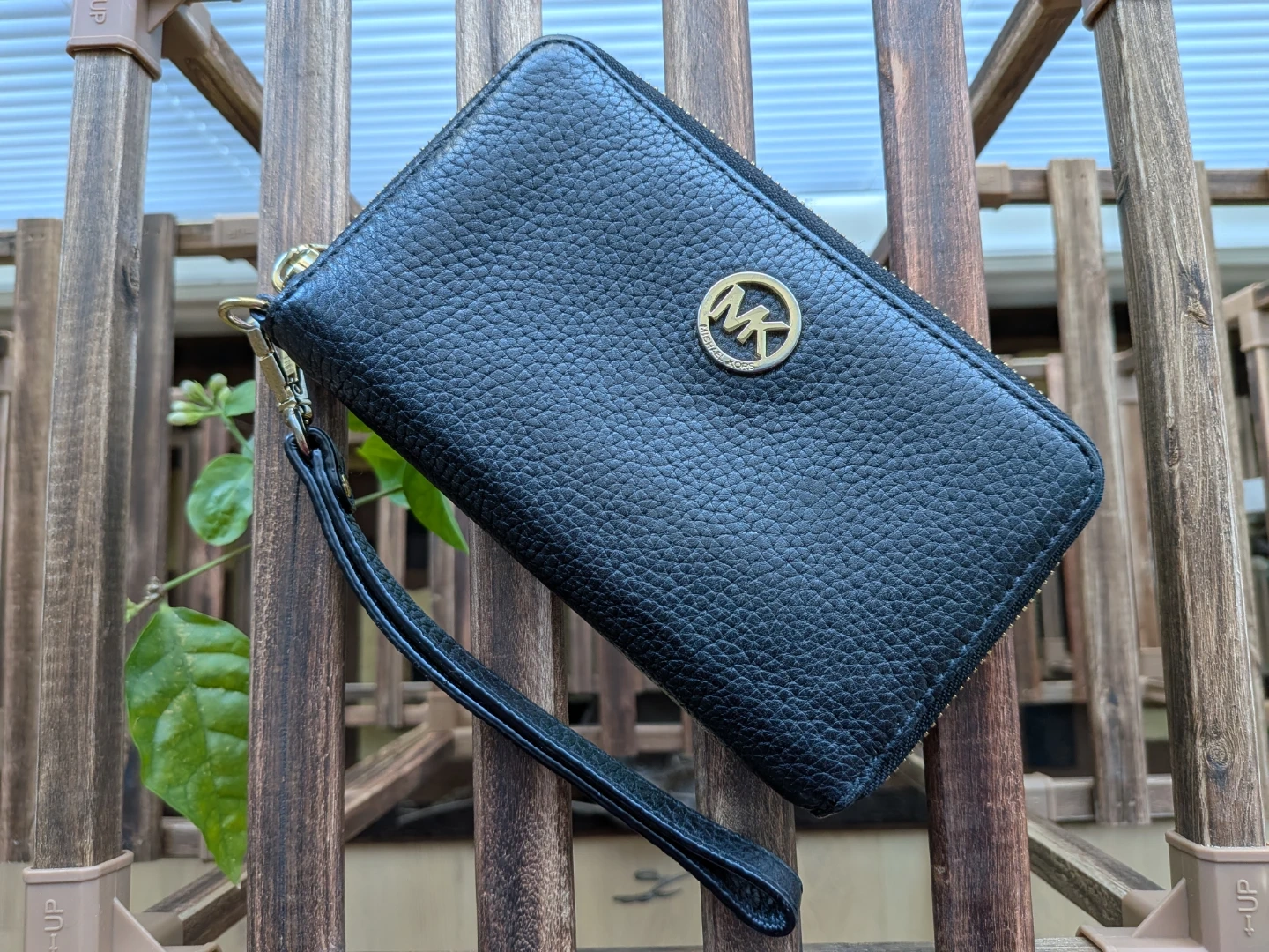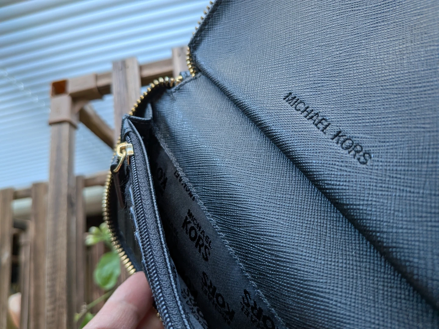 Selling my black, pebbled leather Michael Kors wristlet wallet. Love the zip-around closure, wrist strap and slots for multiple card but just don't use it as much as it deserves. So time to let it go. It's a convenient way to carry your essentials on-the-go. While it's like-new with no cosmetic or structural concerns on the outside (there's a minor discoloration on the back left bottom - see photos), and also no rips or scratches inside, do note the ID window on the inside is stained, likely from receipts or business card (?) - see photo. I haven't tried removing the stain so it could be an easy fix if you know what to do.