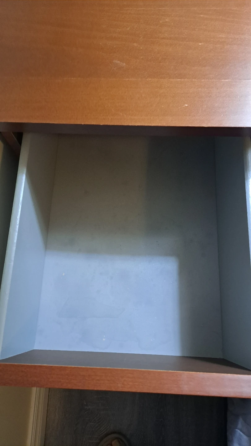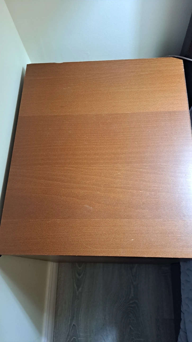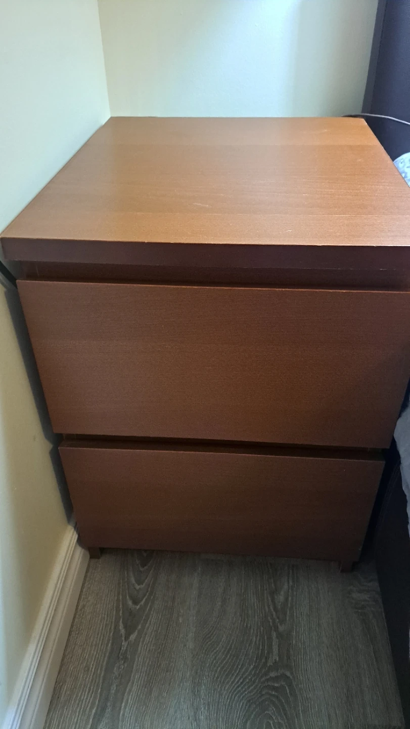 Selling two Ikea 2-drawer nightstand with a wood-look finish. It's perfect for keeping essentials handy next to your bed. Some minor wear is visible on the top edge.