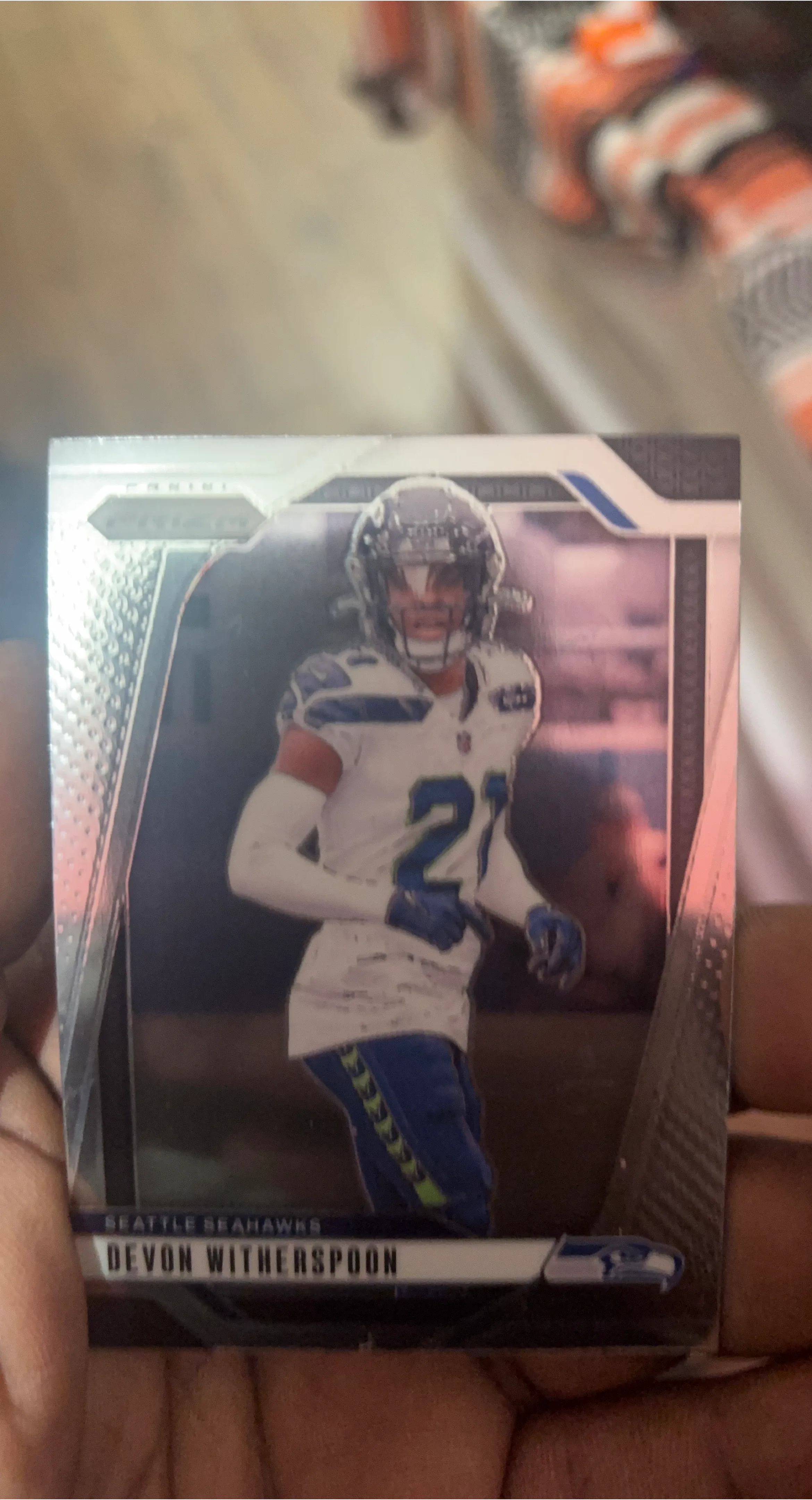 Buy & SellDevon Witherspoon Seattle Seahawks Football CardDevon Witherspoon Seattle Seahawks Football Card$1This is a Panini trading card featuring Devon Witherspoon of the Seattle Seahawks. It's a collectible sports card.WHERE TO MEETCheck LocationView MapSELLERJimBelmont100 reviews0 chats·0 favorites·2 viewsSEND CHAT TO SELLERHi Jim! I’m interested in your listing.Hi Jim! I’m interested in your listing.Get the Karrot app to chatSign In to chat