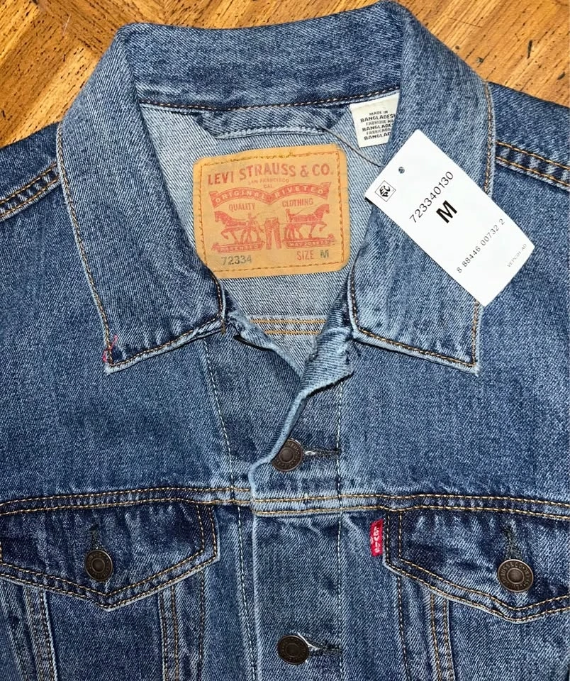 This is a brand new men's relaxed fit trucker blue denim jacket from Levi's Strauss & Co. New with Tags. Original MSRP $98. Pick up on the upper west side of Manhattan.