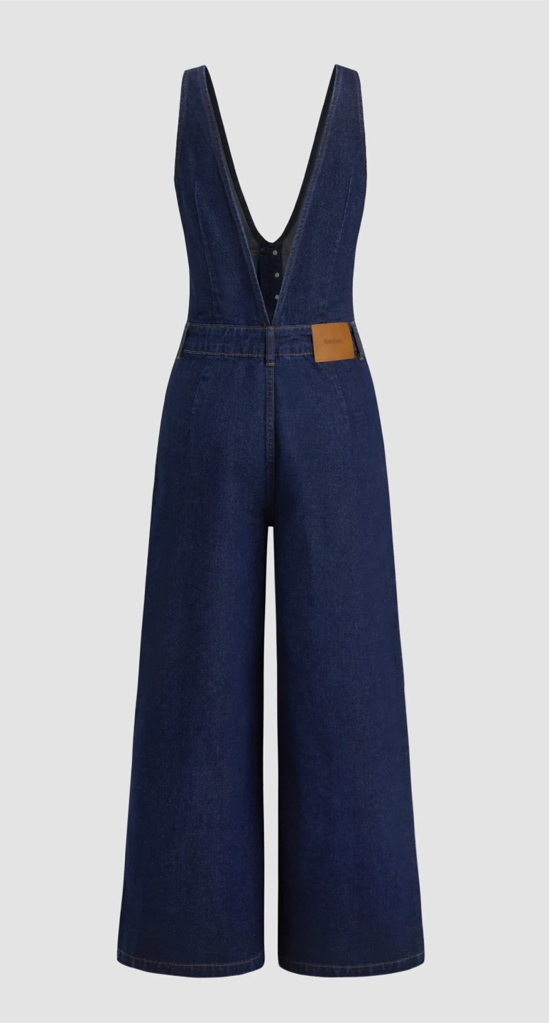 Cider Denim v-neck button pocket wide leg Jumpsuit
