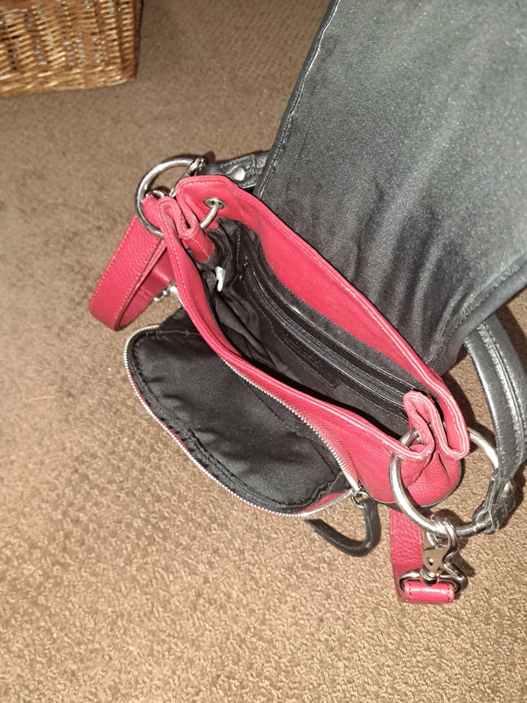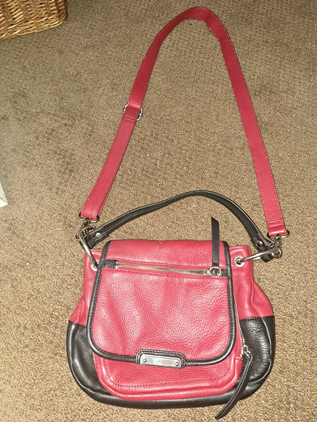 Red and Black Leather Crossbody Bag