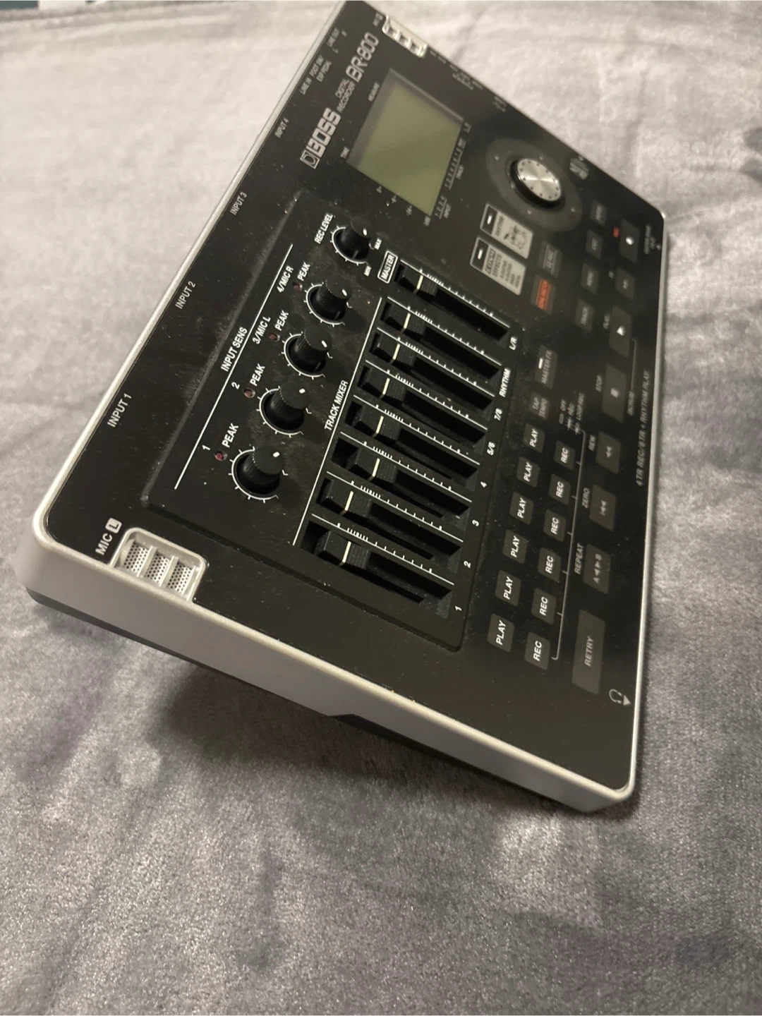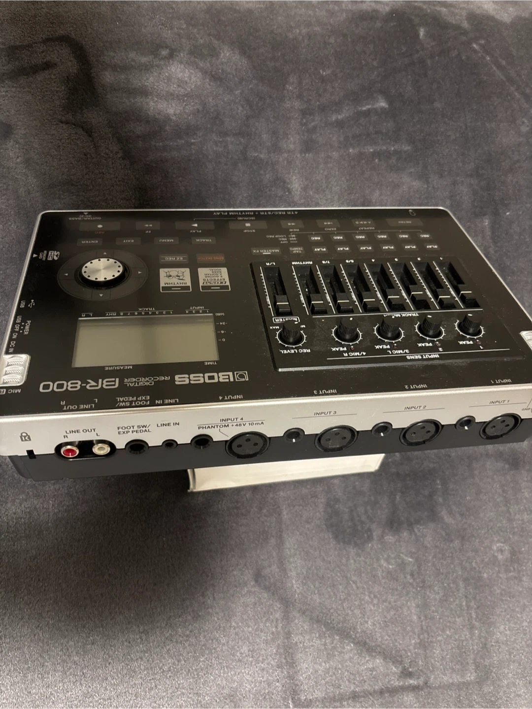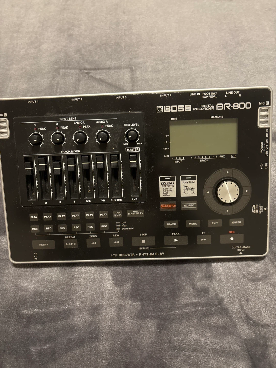 BOSS BR-800 digital recorder. It's a 4-track recorder with rhythm play. Includes inputs for guitar/bass, mic, and line.