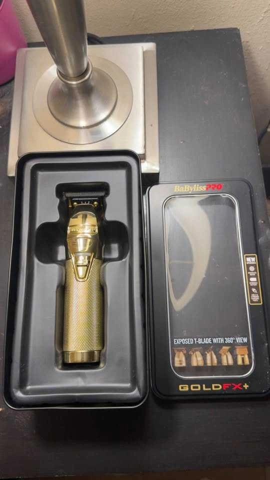 Professional-grade clipper and trimmer combo in the premium GoldFX+ series. Built with an all-metal housing and powered by lithium batteries for strong, consistent performance — perfect for barbers or at-home grooming. Features: All-metal durable construction, High-torque, brushless motor, Lithium battery for long runtime, Precision blades for clean cuts & sharp lines. Ideal for fades, detailing & full haircuts. Sleek gold finish with powerful performance — a top-tier grooming set. Condition: BNIB Trimmer, Slightly Used Clipper with box.