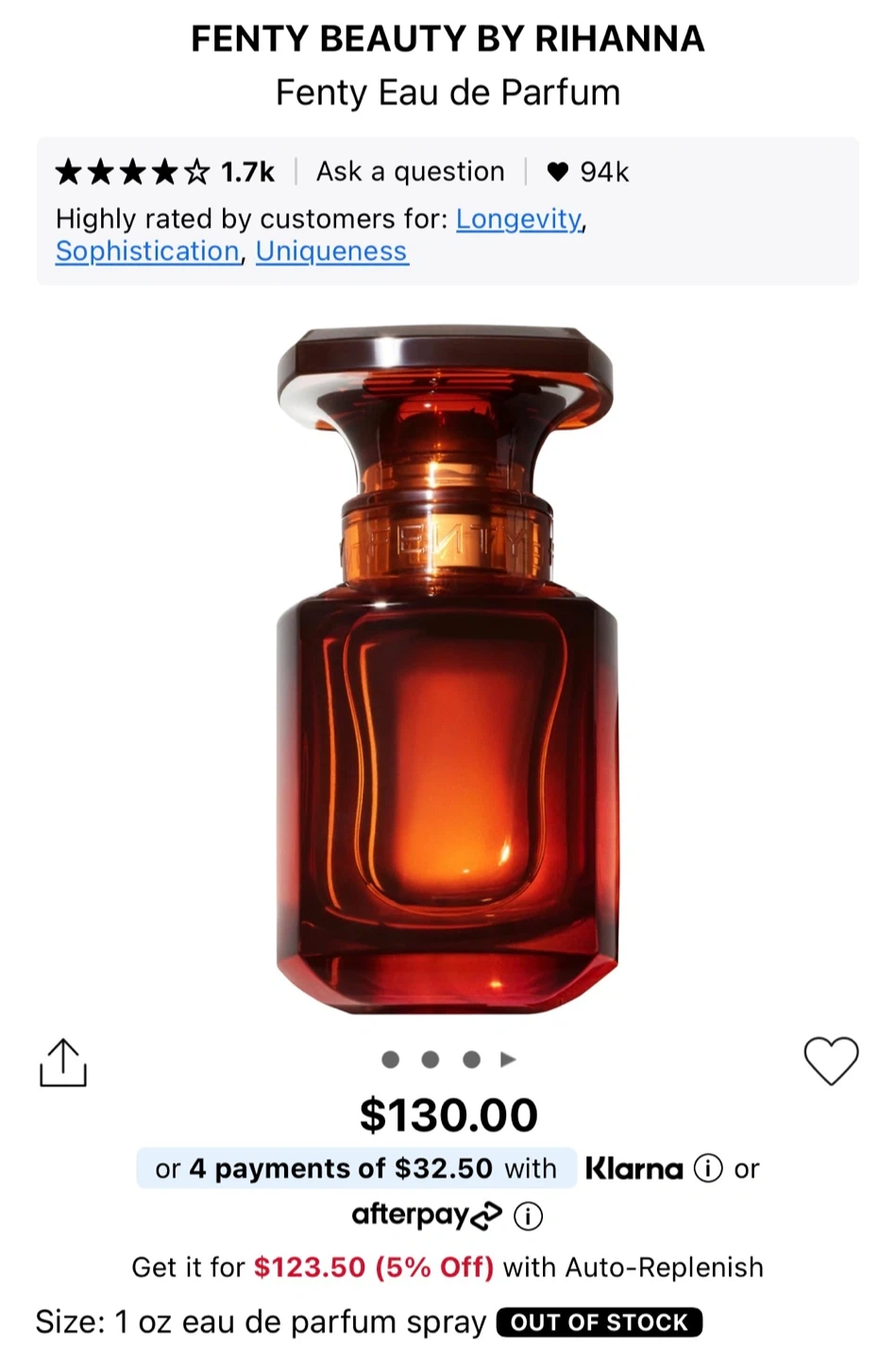 Buy & SellNew Fenty Eau de Parfum 1 fl ozNew Fenty Eau de Parfum 1 fl oz$50Selling a brand new Fenty Eau de Parfum! It's in its original box and is 1 fl oz/30 mlConditionNewBrandFentyWHERE TO MEETOcean parkView MapSELLERLindsayOcean Park373 reviews2 chats·1 favorites·7 viewsSEND CHAT TO SELLERHi Lindsay! I’m interested in your listing.Hi Lindsay! I’m interested in your listing.Get the Karrot app to chatSign In to chat