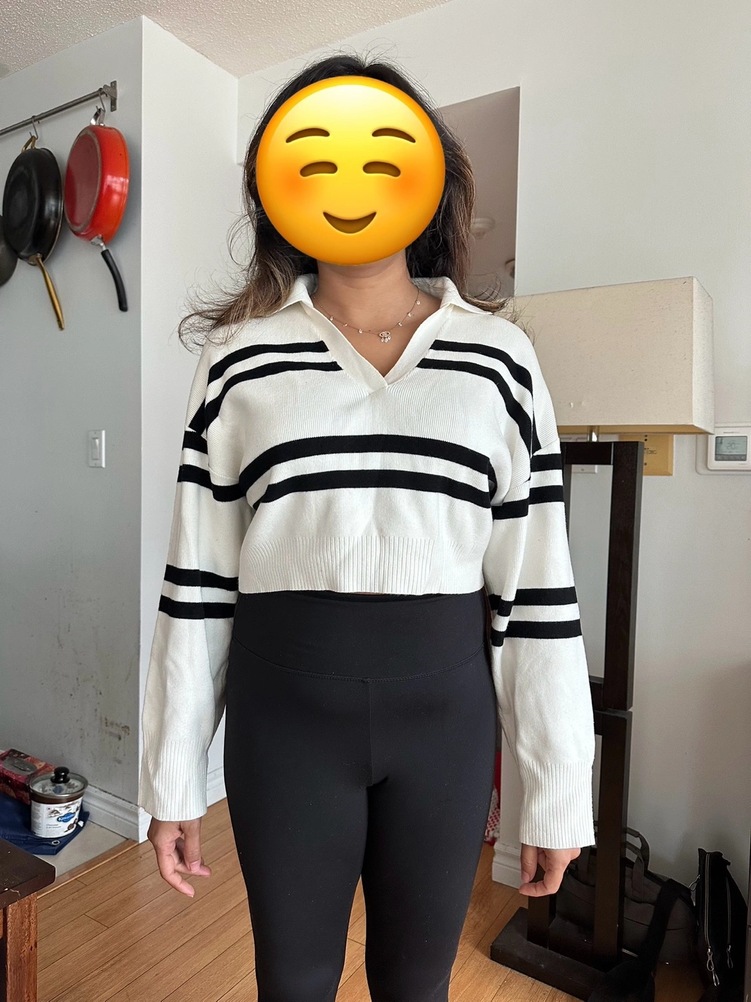 Buy & SellDynamite Striped Knit SweaterDynamite Striped Knit Sweater$15Selling a cute striped knit sweater! It's a cream colour with black stripes. Perfect for layering or wearing on its ownConditionLike newSizeSmallBrandDynamiteWHERE TO MEET381 Front Street West, Toronto M5V3R8View MapSELLERverifiedManikEntertainment District29724 reviews0 chats·0 favorites·39 viewsSEND CHAT TO SELLERHi Manik! I’m interested in your listing.Hi Manik! I’m interested in your listing.Get the Karrot app to chatSign In to chat