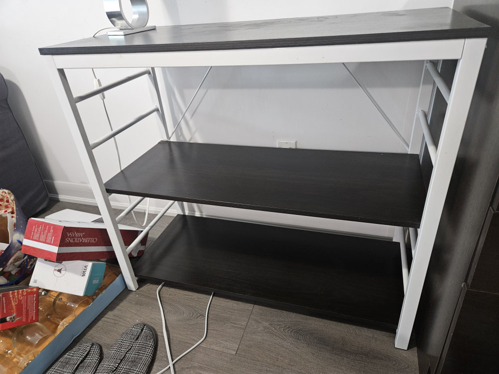 Great little shelf thing. We used it in our kitchen the last couple years, great condition, just a few minor issues on the top, see photos. It can also be taken apart to move easier. 25obo