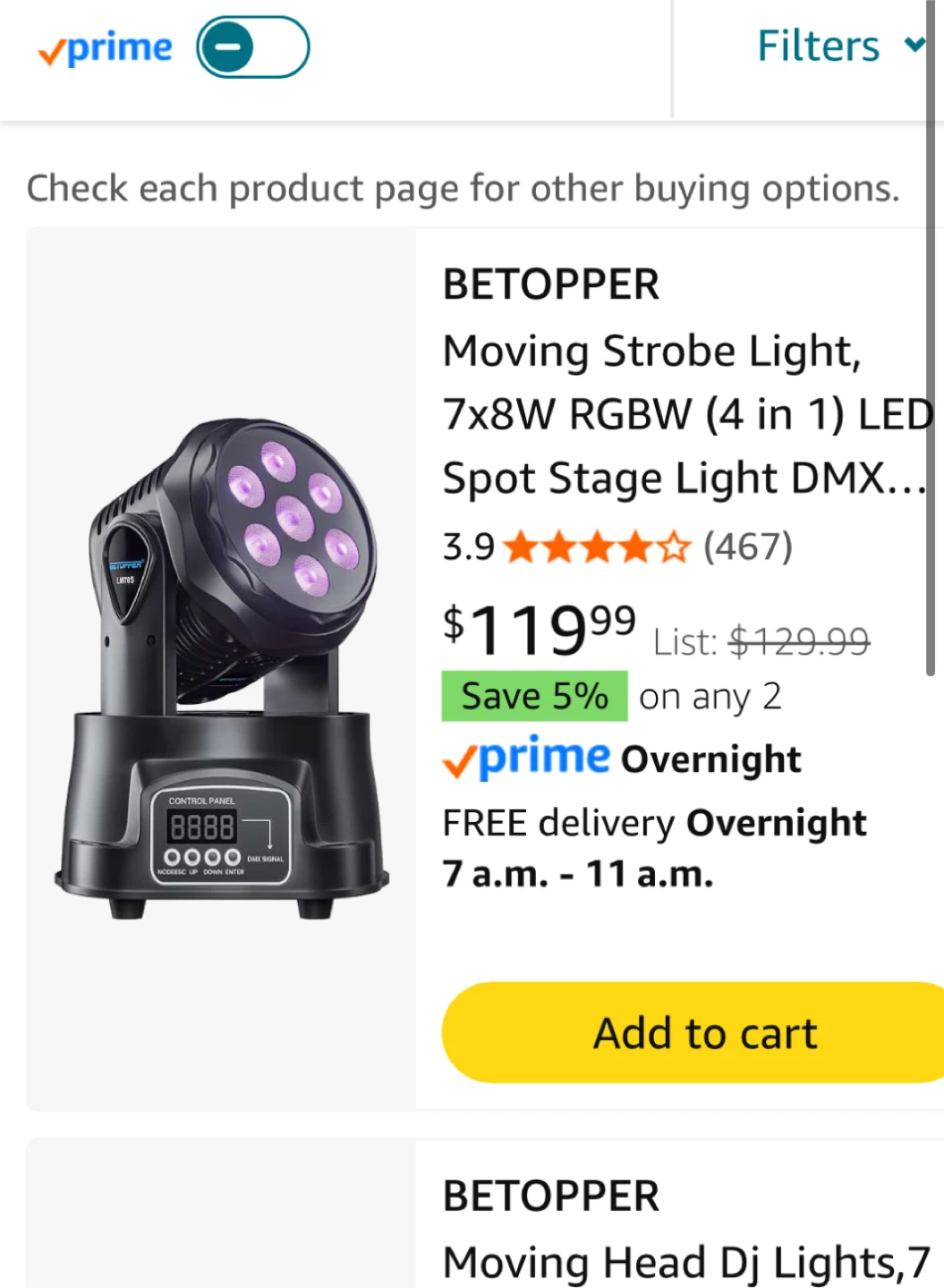 Selling a BETOPPER moving strobe light! It's a 7x8W RGBW (4 in 1) LED spot stage light. This light is perfect for DJ shows, bars, restaurants, clubs, weddings, and home parties. The dimensions are 295mm in height and 225mm in width.