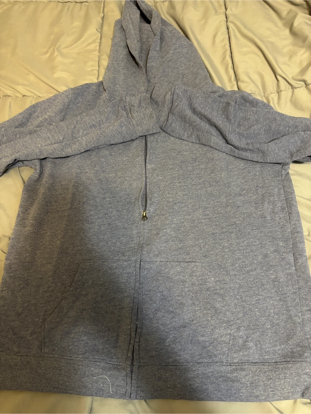 A comfy full zip hoodie, perfect for layering or just lounging around the house! It has a hood and pockets, great for keeping your hands warm on chilly days