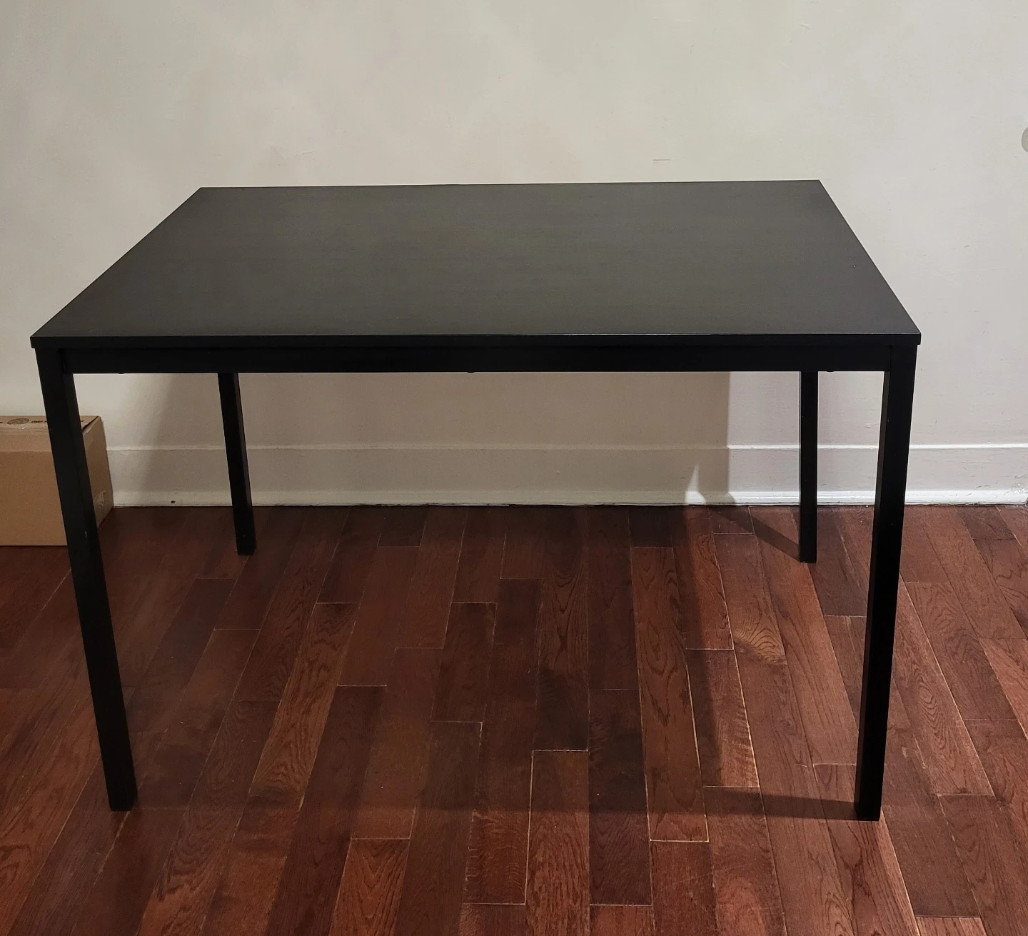 Selling a black dining table, perfect for any home. It's in great condition and ready for a new dining room or kitchen. The sleek design will fit seamlessly into your space
