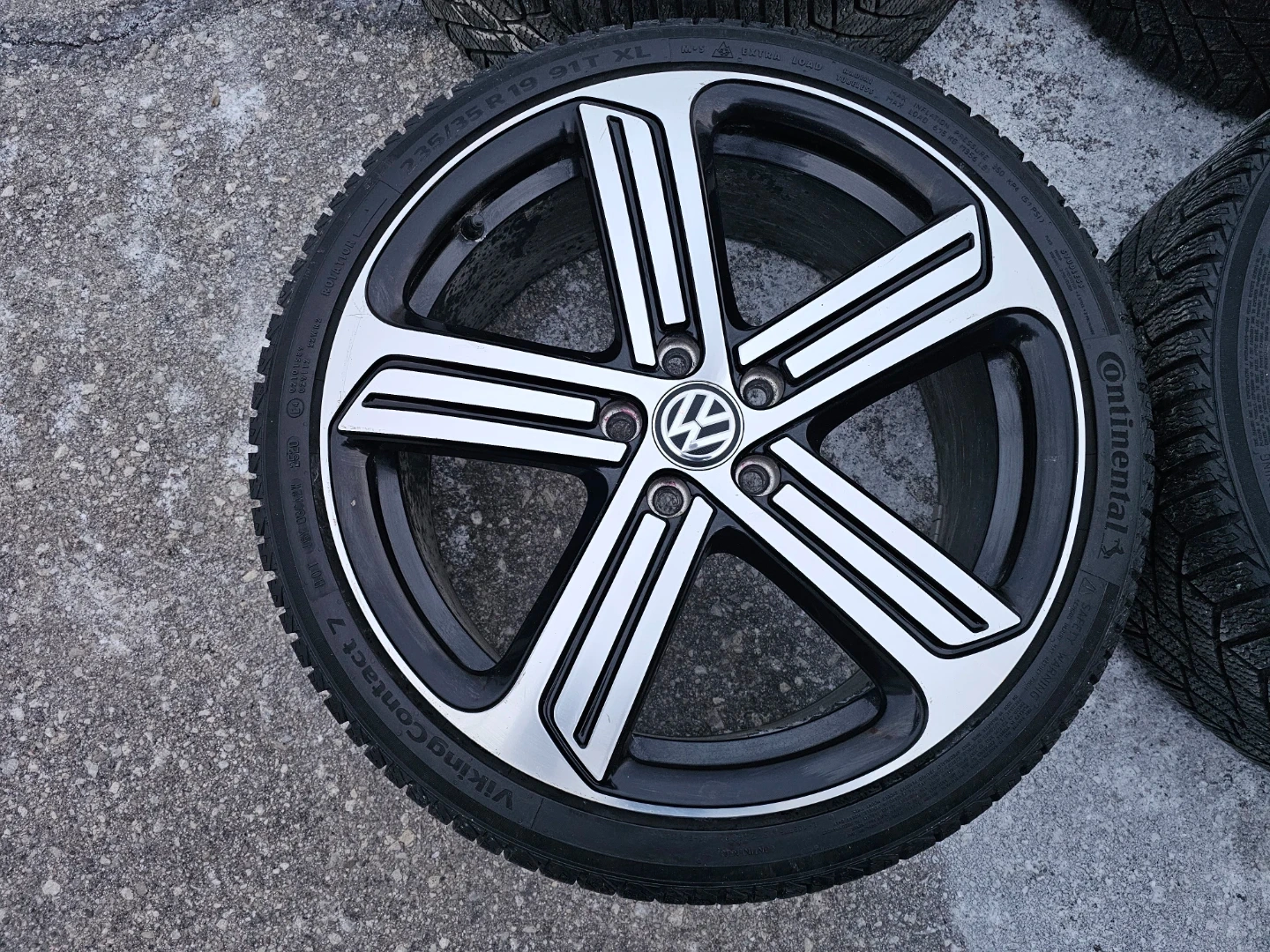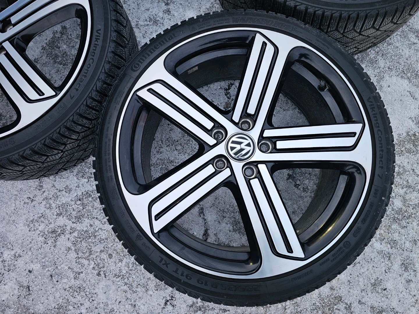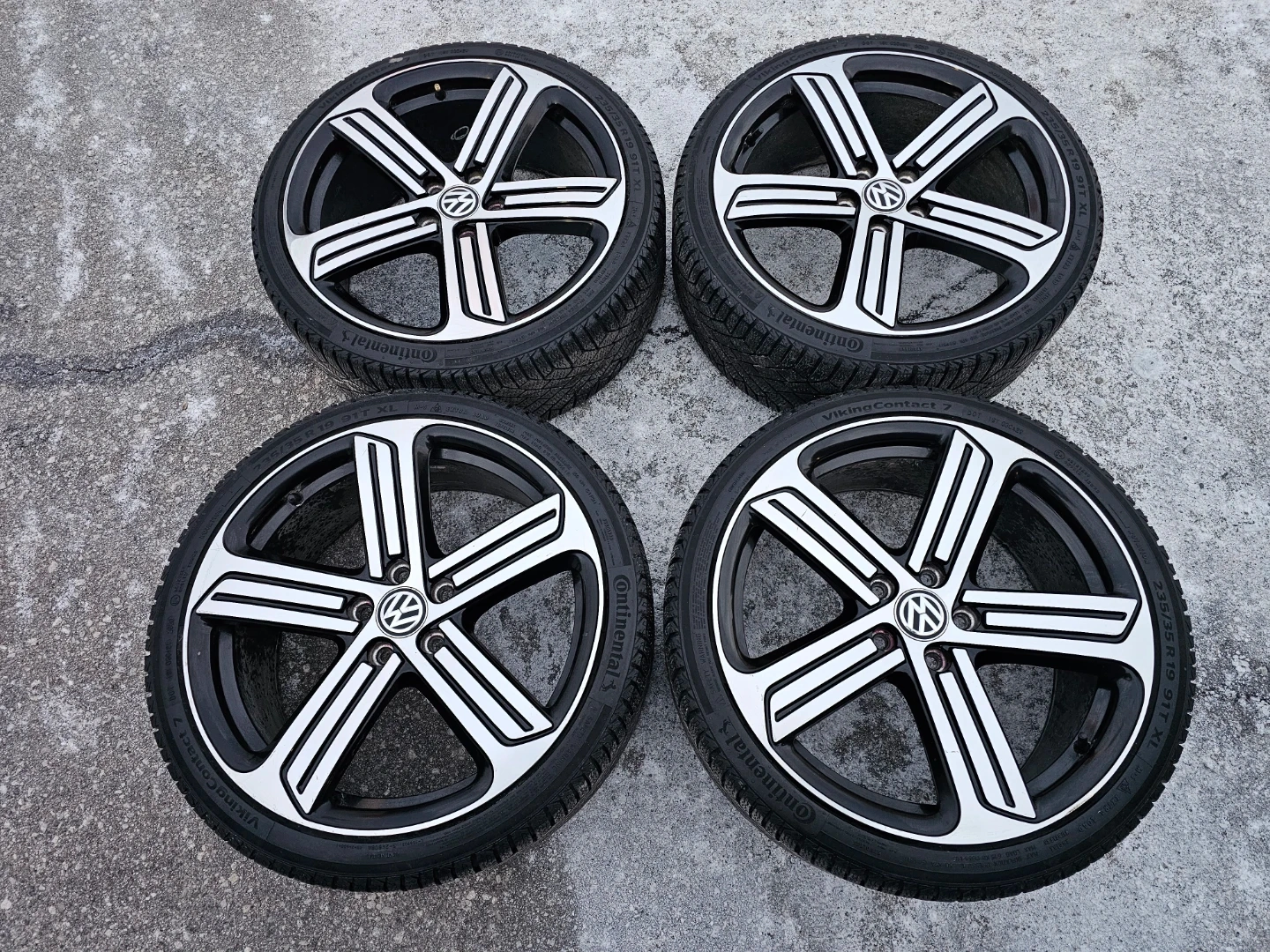 Set of 4 original 19" volkswagen golf R (mk7) rims with continental winter tires on them 235/35 R19. Rims and tires are in good shape, no issues. Lots of thread left on tires
