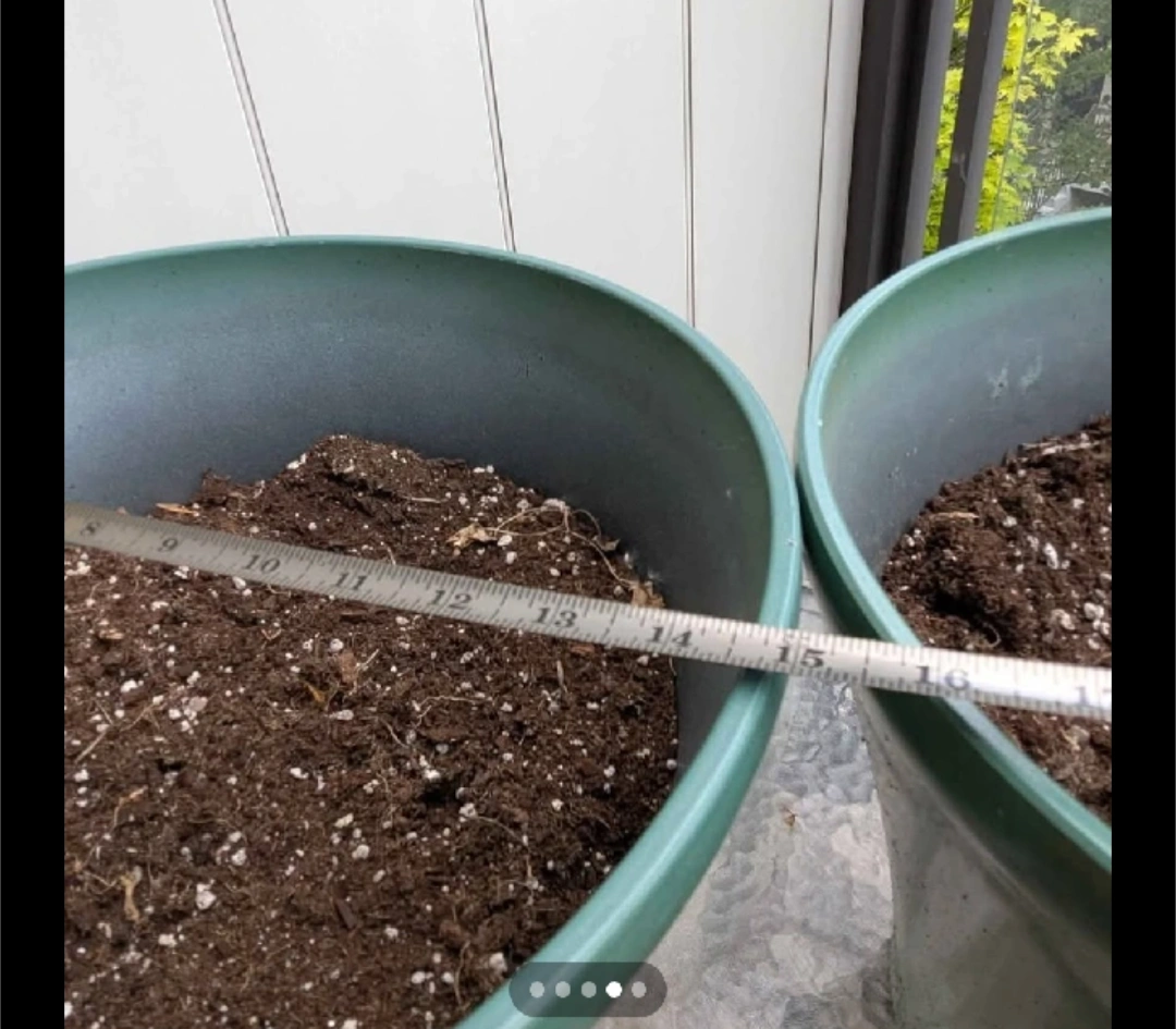 Giving two good-sized round plastic planter pots. They are approximately 13 x 15 inches.