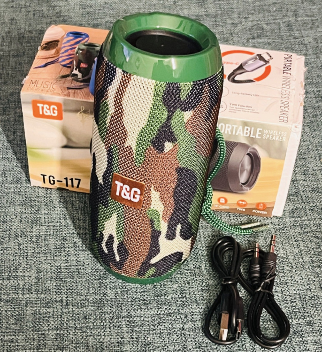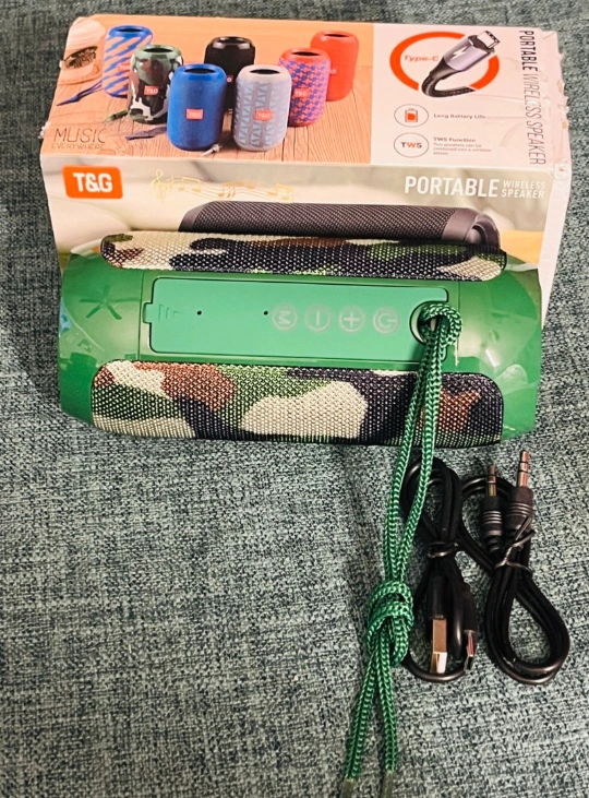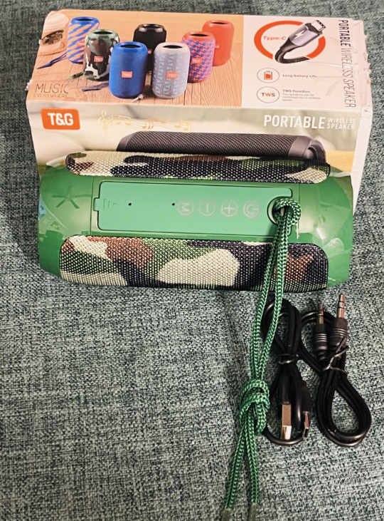 Listen up, music lovers! I'm selling this brand new T&G TG-117 portable wireless speaker in a cool camouflage design! This speaker is brand new, still in its original packaging, and ready to pump out your favourite tunes.