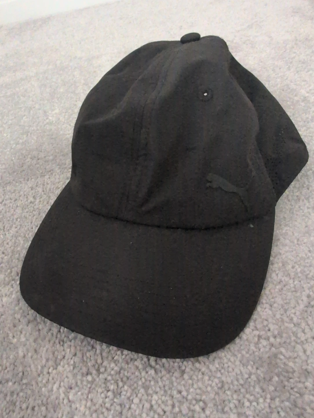 Selling a black Puma baseball cap. It's in great condition and ready for a new owner! Perfect for sunny days or adding a sporty touch to your outfit