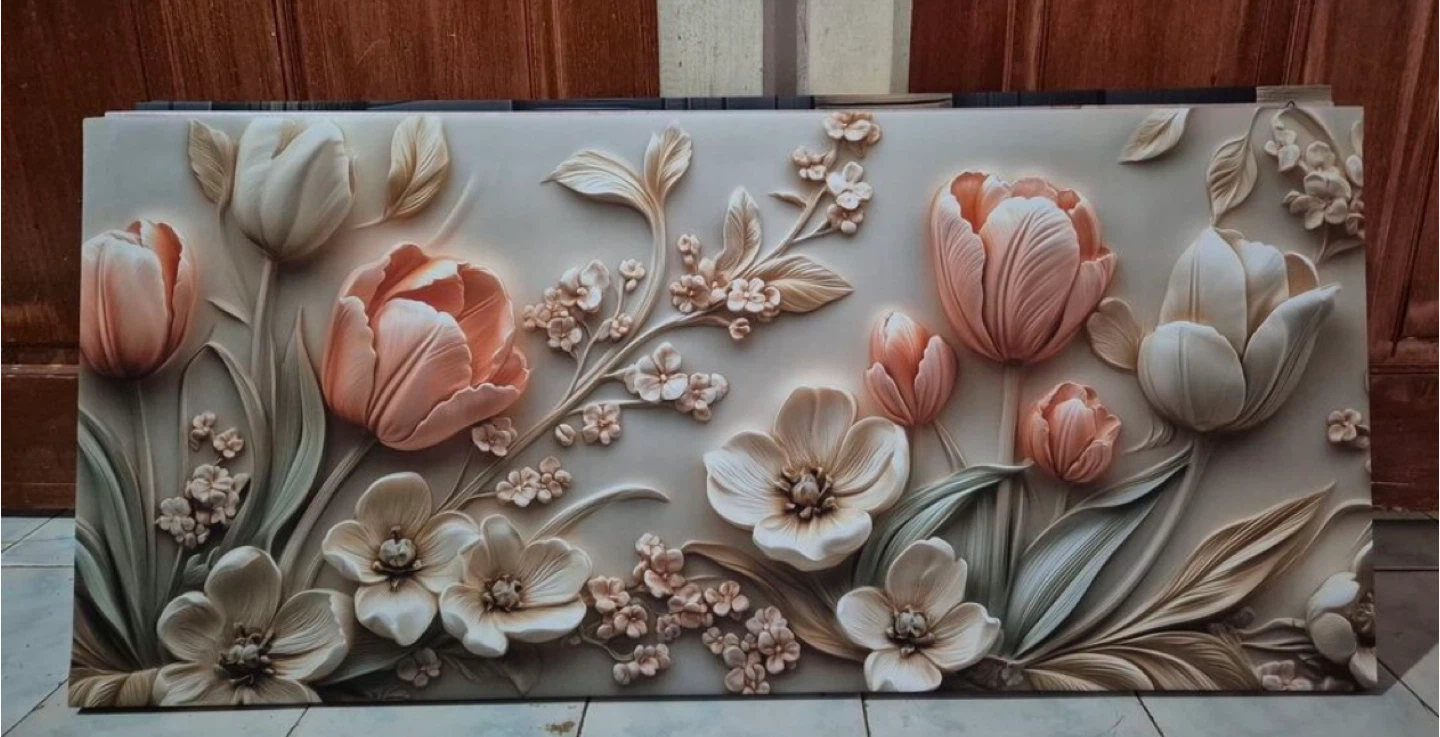 Beautiful textured canvas wall art featuring a vibrant feather design and a floral motif. Adds a touch of elegance to any room. Ready to hang!