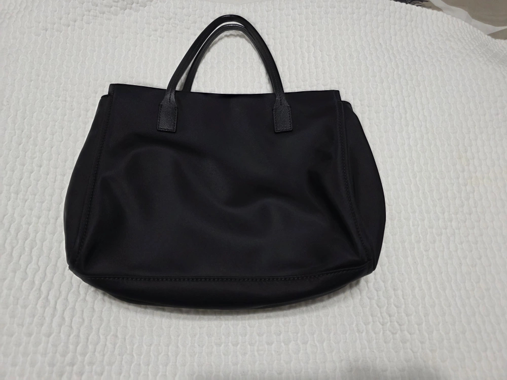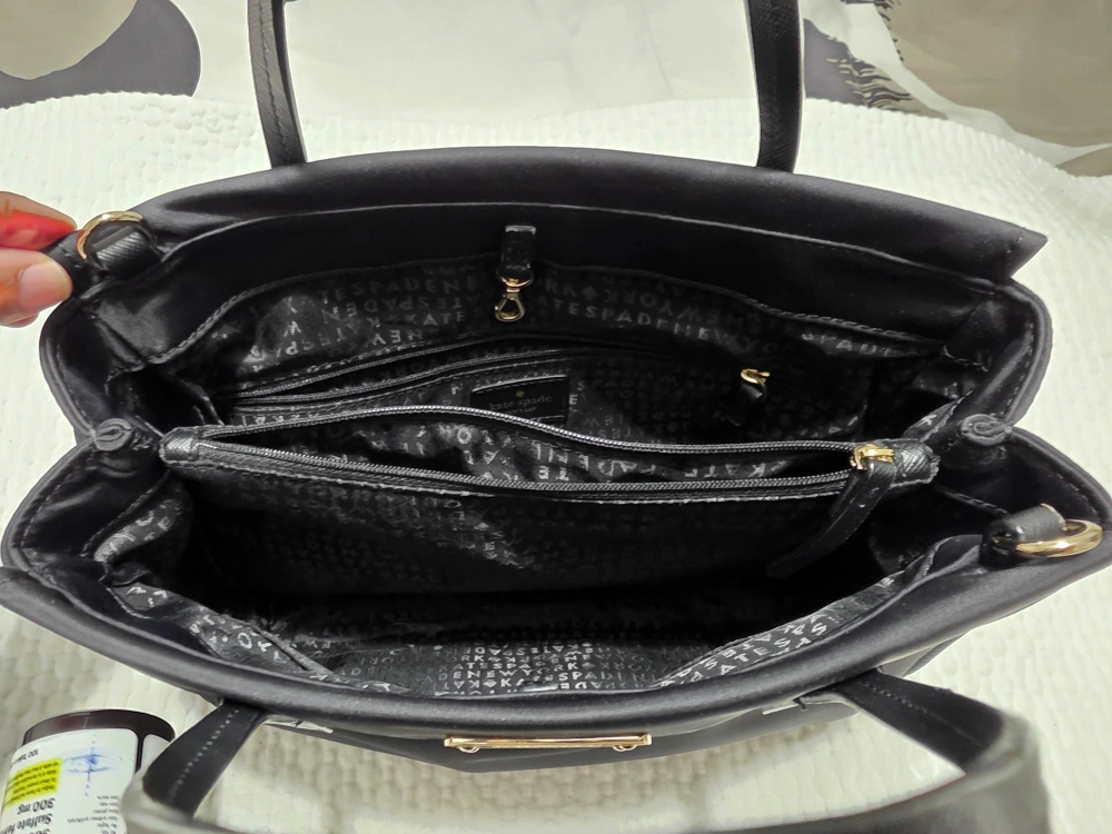 Here's a stylish black tote bag from Kate Spade! It's in great condition and perfect for everyday use. The interior lining features the Kate Spade logo. A versatile and chic addition to any wardrobe!