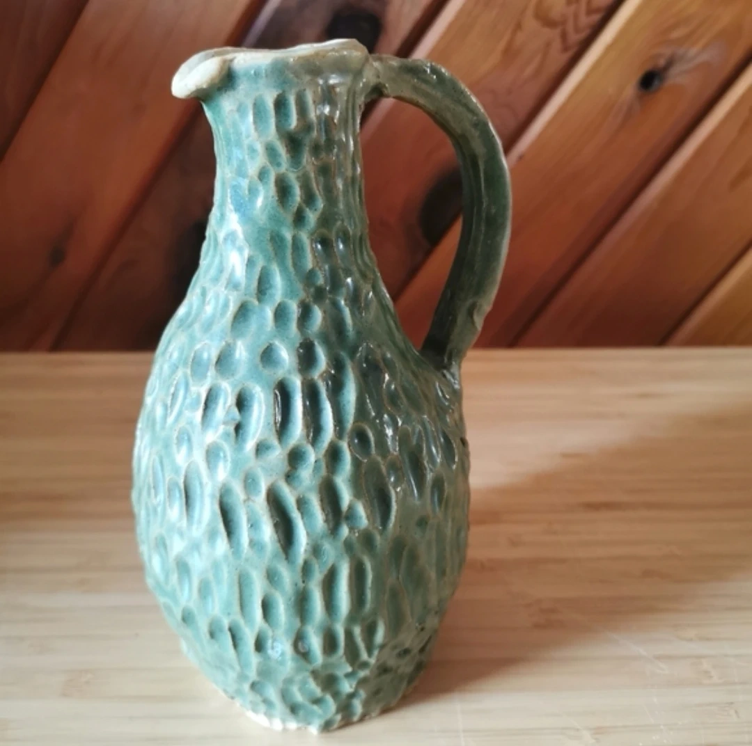 Beautiful Vintage Matte Green Pottery Pitcher Vase