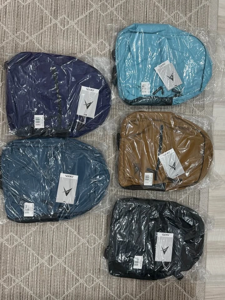 Brand new, unused backpacks for sale. Lightweight, compact, and comfortable to carry. Good size for everyday use without feeling bulky. Works well for school, college, office, travel, or casual daily use. Simple design with useful pockets to keep things organized. Features: Lightweight and easy to carry, Front spacious outer pocket, Side pocket for bottle or small items, Pen holder pocket, Strong top carry handle, 100% polyester material. Size / Capacity: Height: 39 cm (15.3 inches), Width: 30 cm (11.8 inches), Depth: 12 cm (4.7 inches), Capacity: 14 litres. Available colours: Ocean Blue, Brown, Purple, Black, Sky Blue. $20 each or 3 for $50. All bags are new and unused. Good option for personal use or bulk buying.