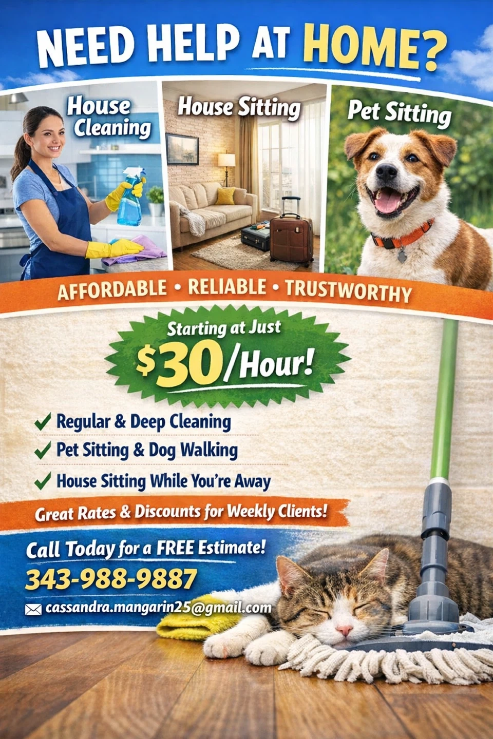 🧹 House Cleaning, House Sitting & Pet Sitting Available! 🐾