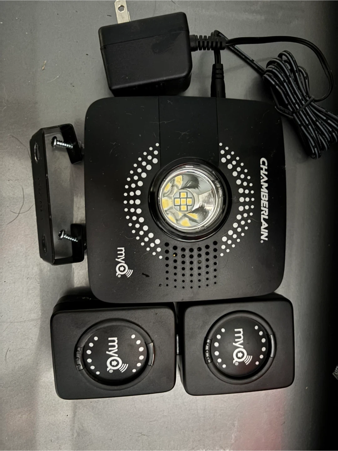 Selling a Chamberlain myQ Smart Garage Hub! It allows you to get alerts and control your garage door from anywhere. Included are the Wi-Fi Hub, Door Sensor, Mounting Bracket, and Instructions. Compatible with most garage door openers with safety sensors manufactured since 1993 by Chamberlain, LiftMaster, Craftsman, and more