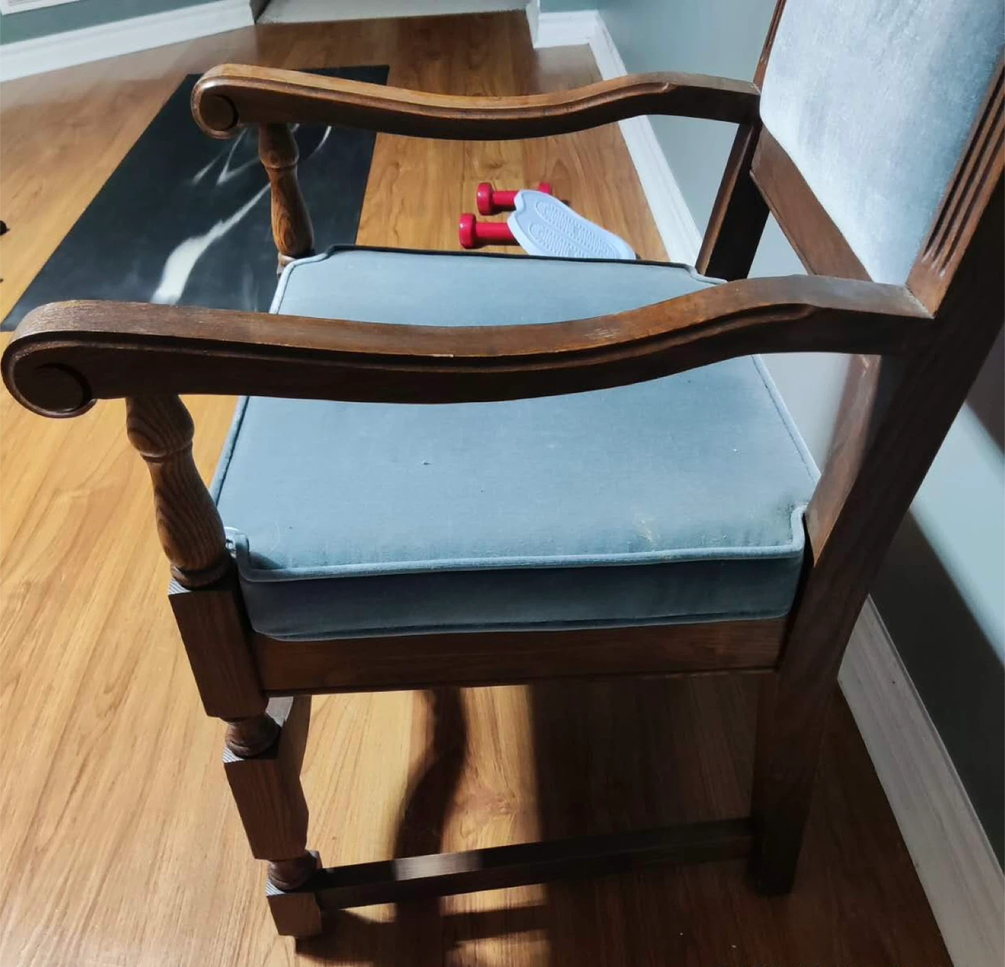 2 hardwood dining chairs with arms