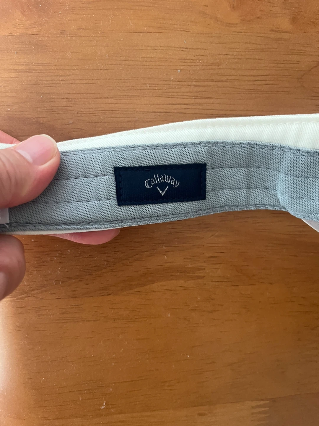 Keep the sun out of your eyes on the golf course with this stylish Callaway visor! It's white with navy blue polka dots and features the Callaway logo in red. Perfect for sunny days!