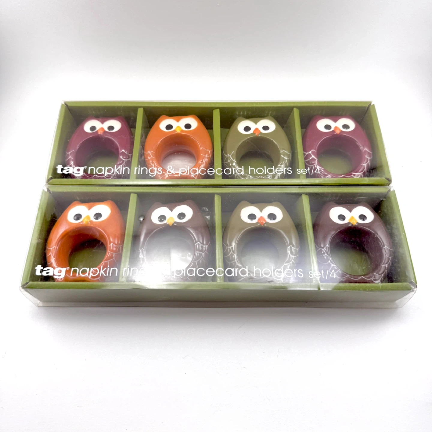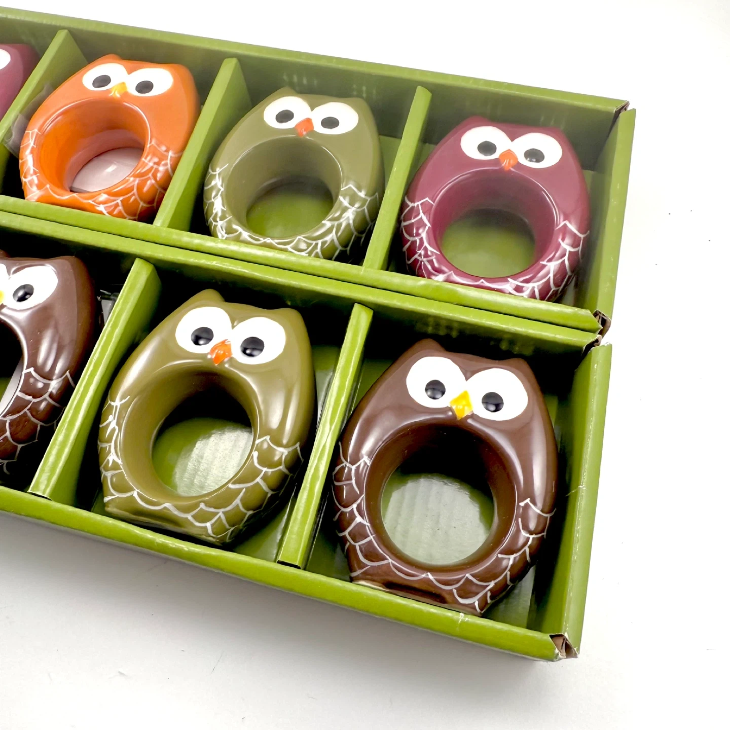 Set of 4 ceramic owl napkin rings — 2 packs available at 8.00 each, in original packaging, in like-new condition