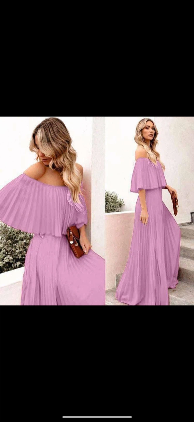 Flowy lilac off-the-shoulder maxi dress! Perfect for summer outings or special occasions. It's in great condition and ready for a new wardrobe