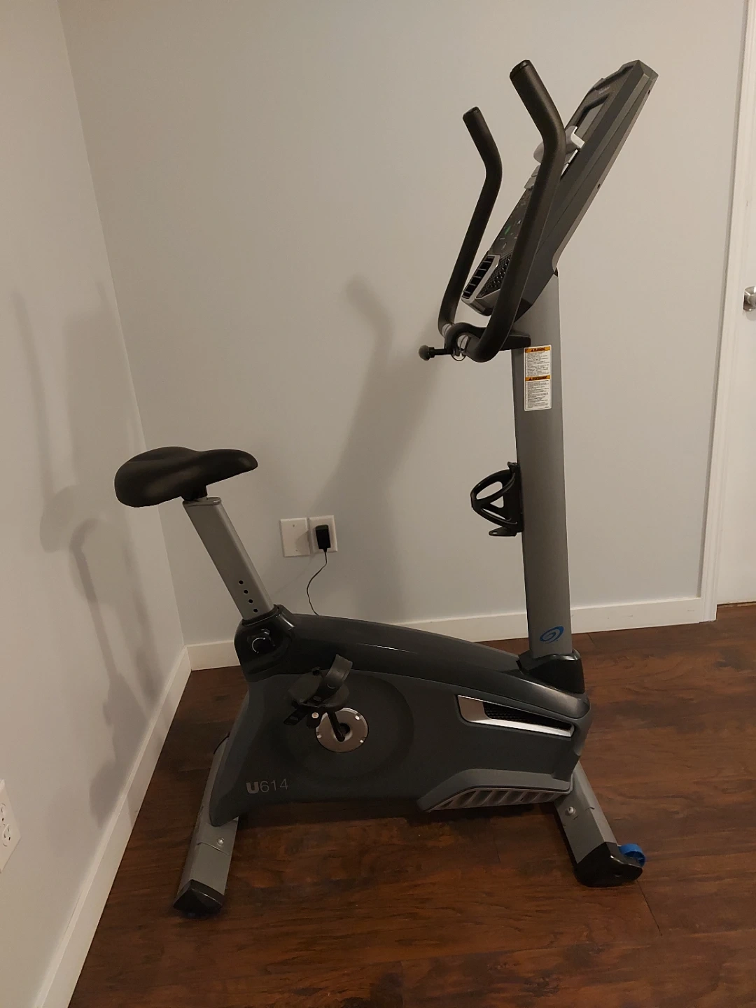 Selling a Nautilus U614 Upright Exercise Bike in like new condition. Features a console with various programs and resistance levels, fans and a water bottle holder. Lightweight and easily moved around with transfer wheels at the base. This bike is great for home workouts!