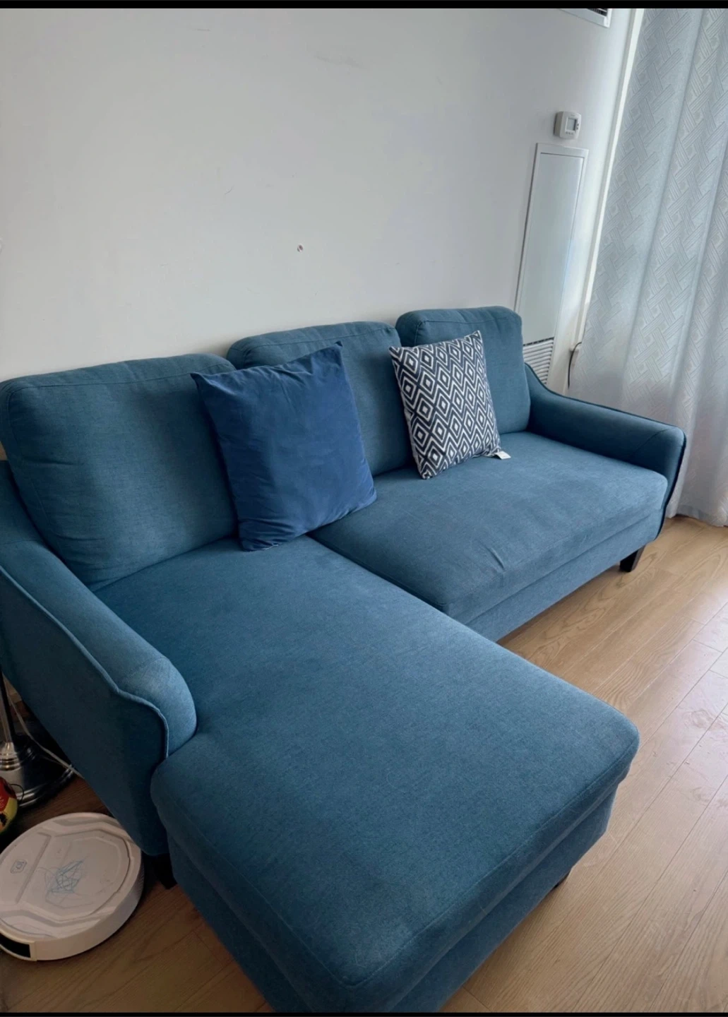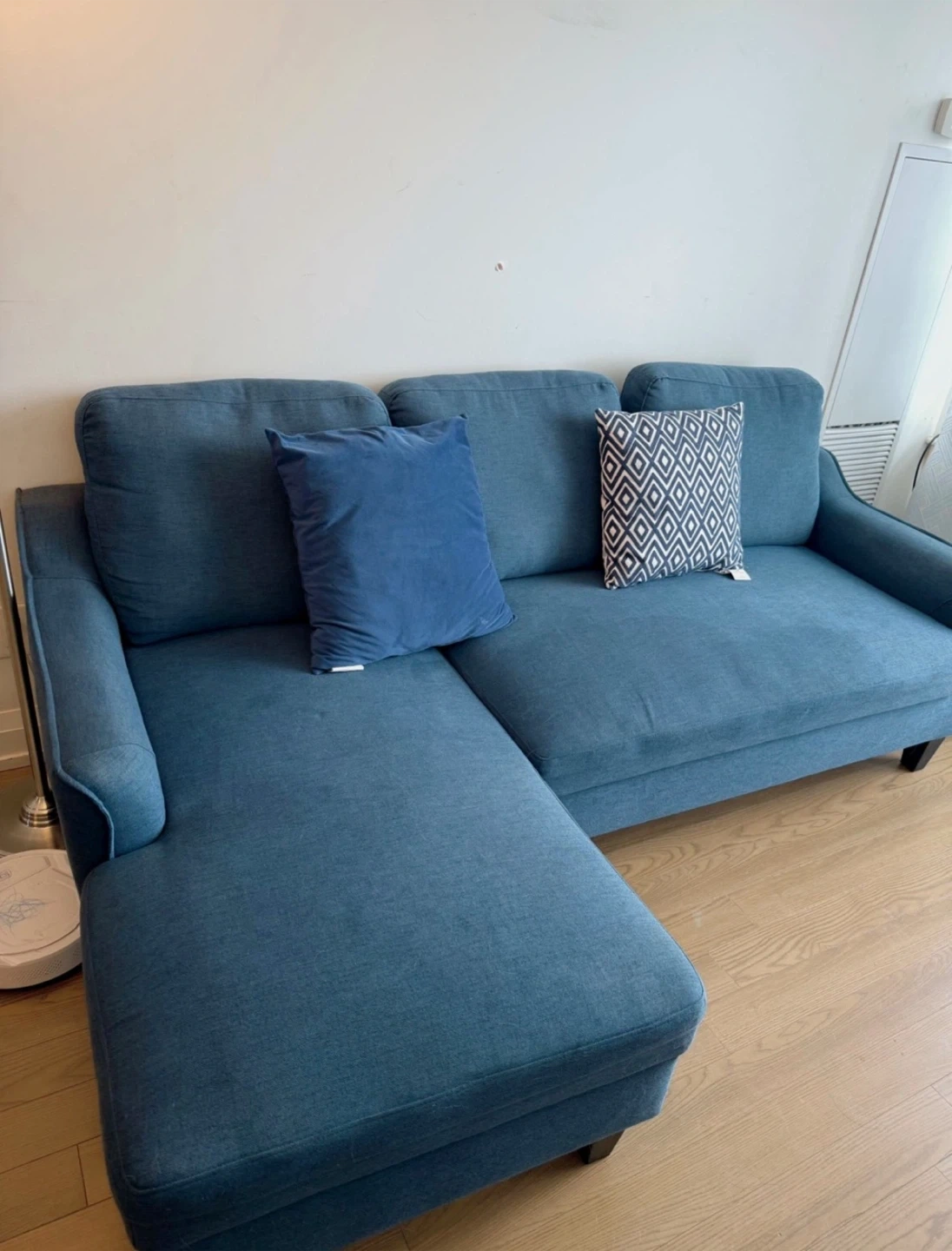 Blue Sectional Sofa with Chaise- moving out sale