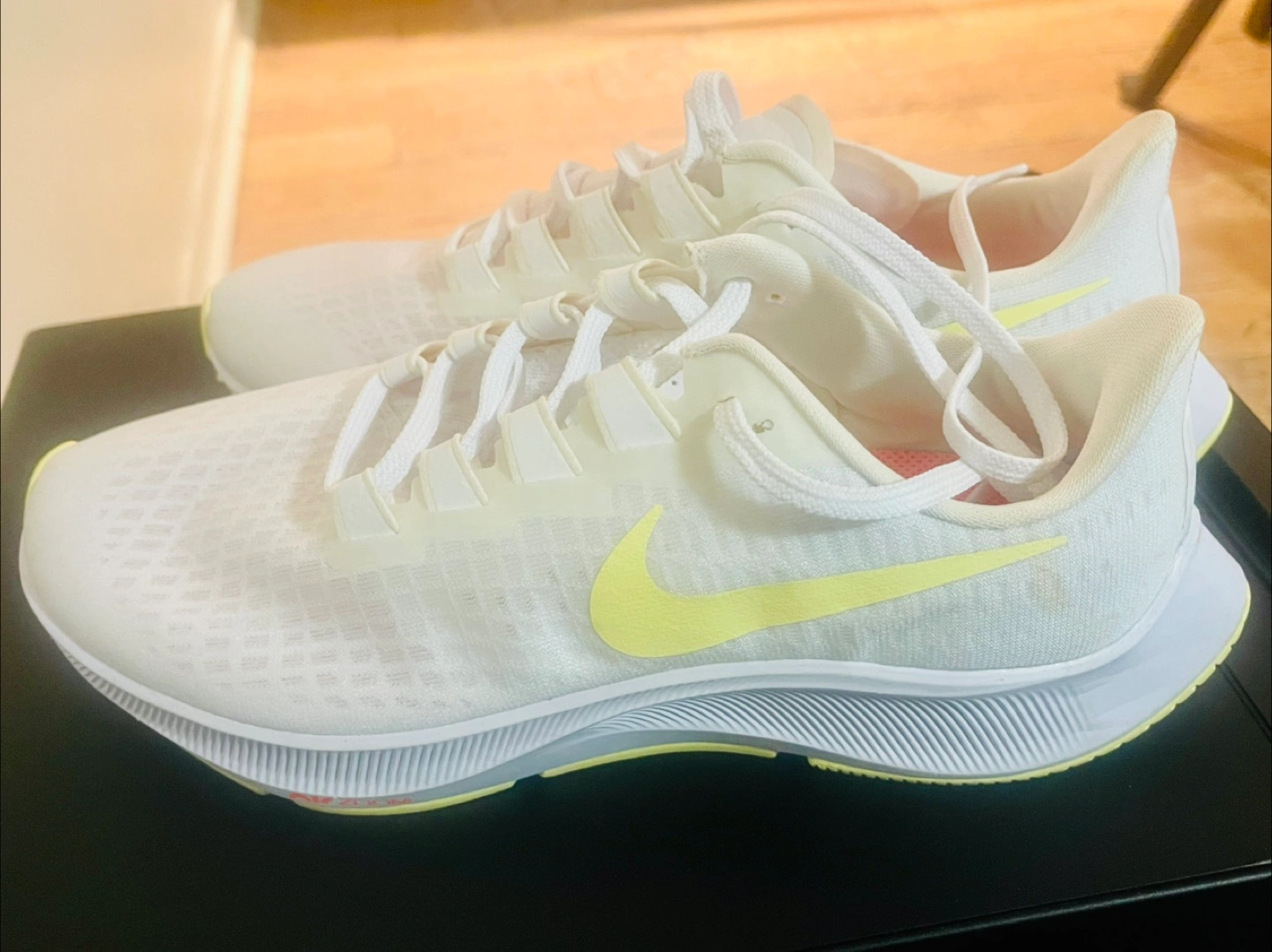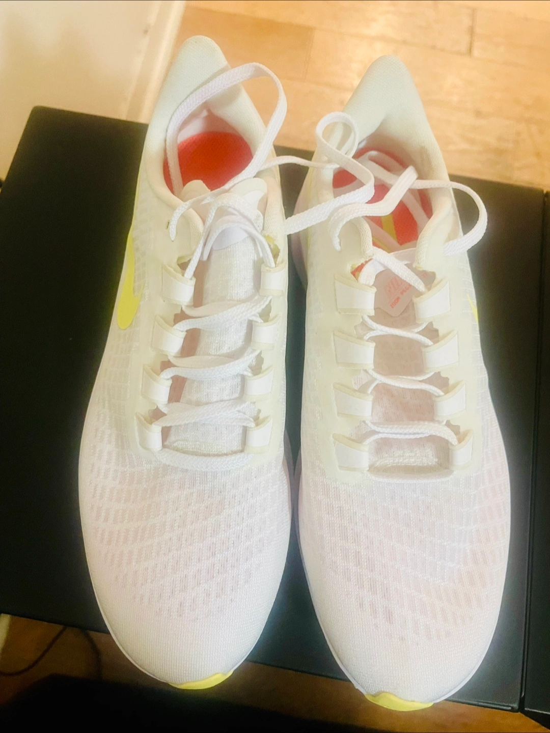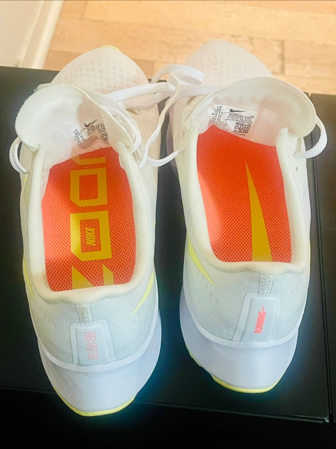 Selling a pair of Nike Air Zoom Pegasus 38 women's running shoes in US size 10. These are in great condition and ready for your next run! The colour is mostly white with a hint of yellow.