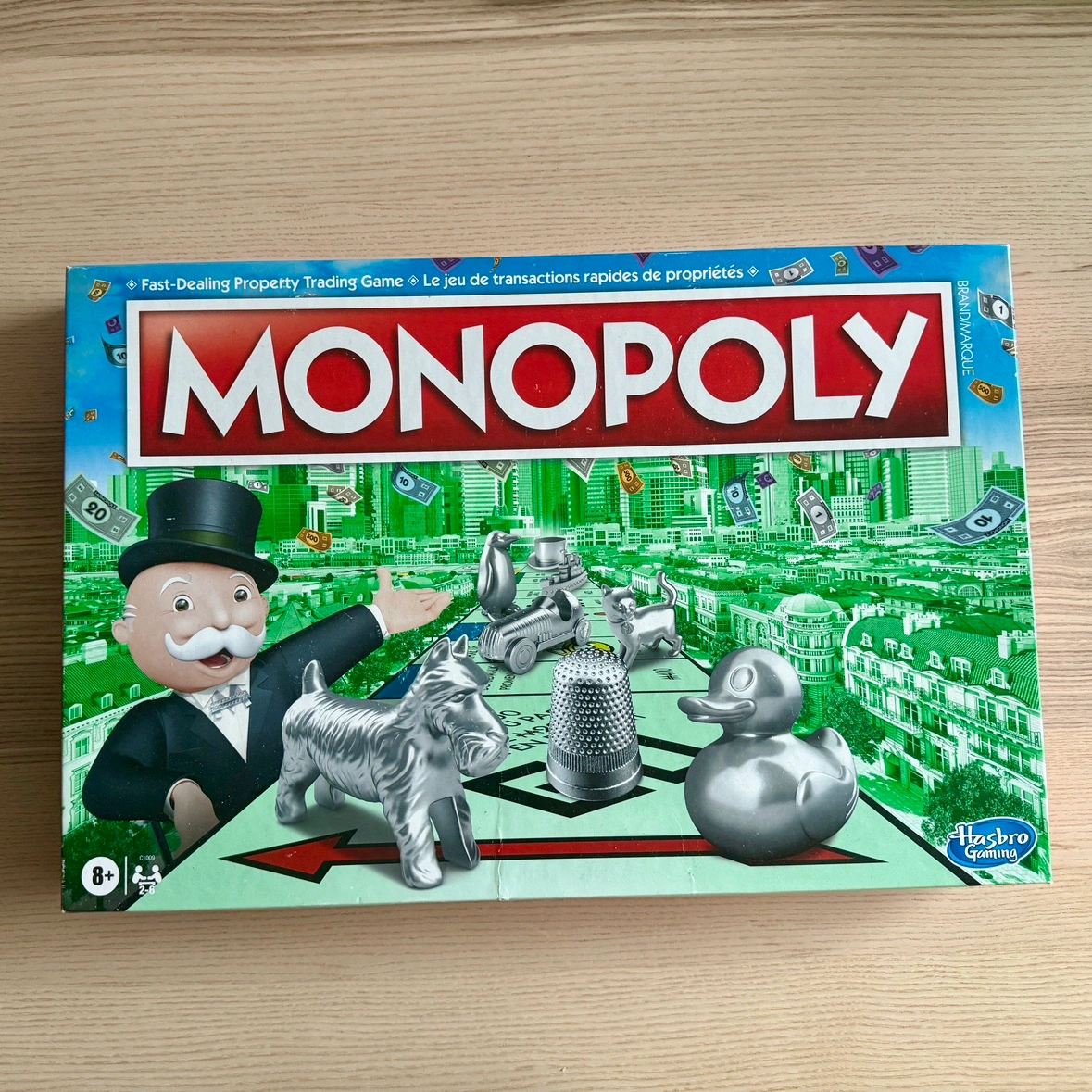 English and French version. It has been opened and the box is damaged as picture. Conditions is like new, only used the money twice for poker games. Cash only.