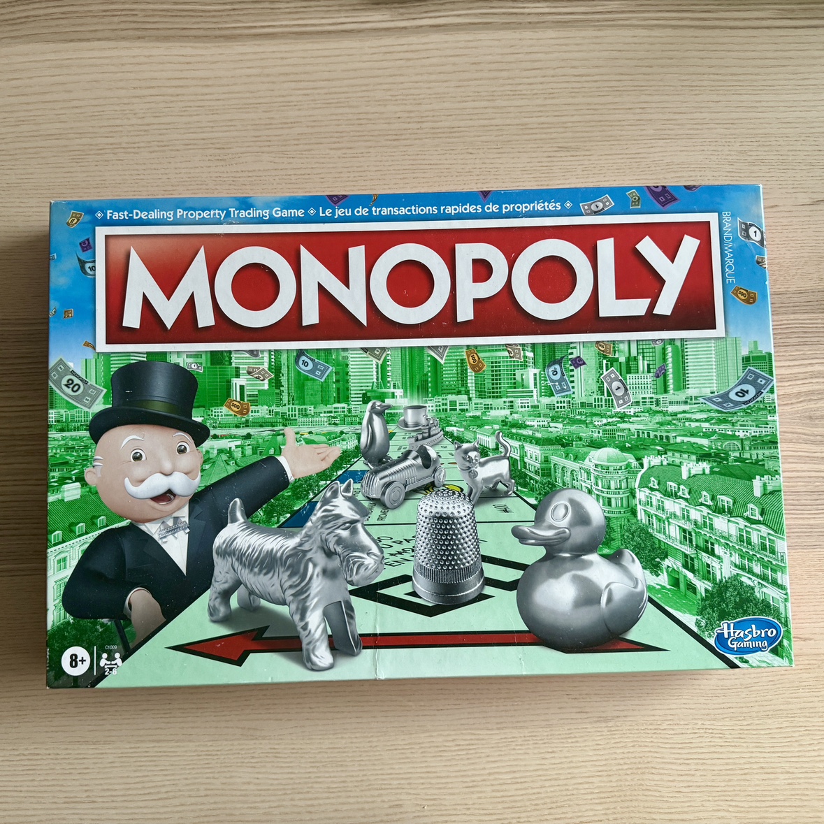 English and French version. It has been opened and the box is damaged as picture. Conditions is like new, only used the money twice for poker games. Cash only.
